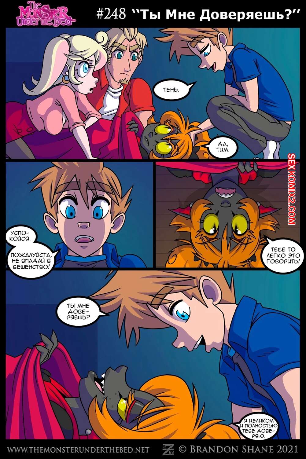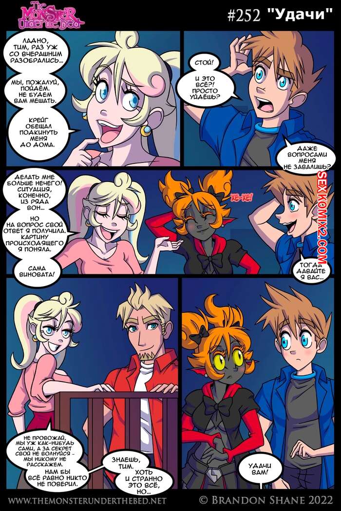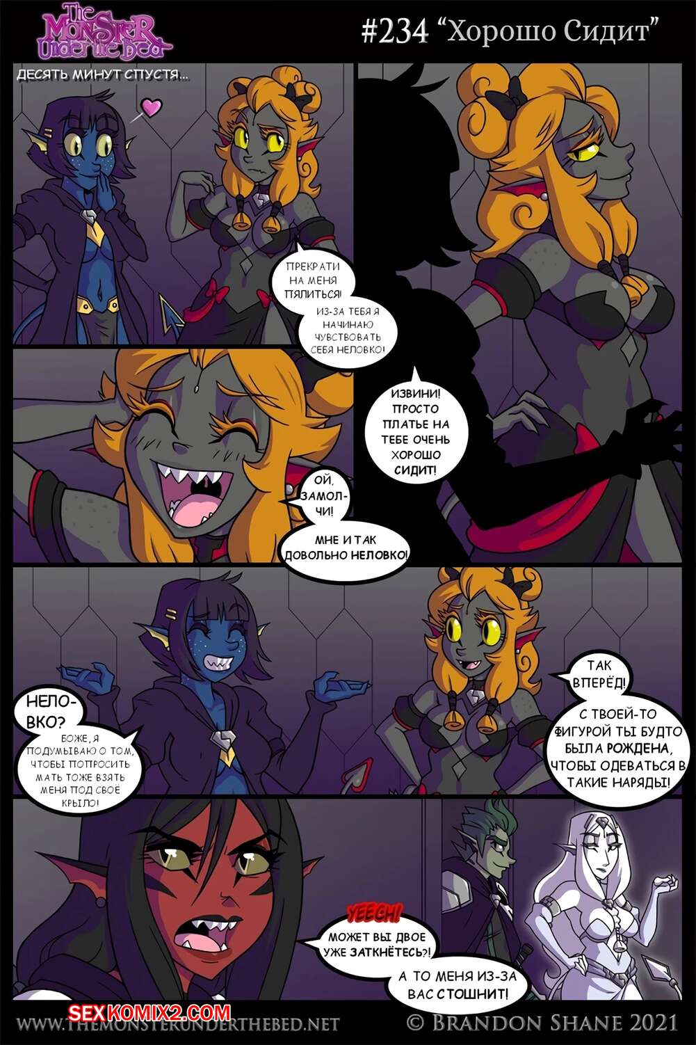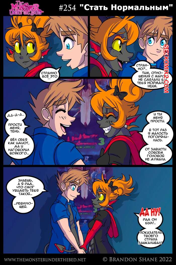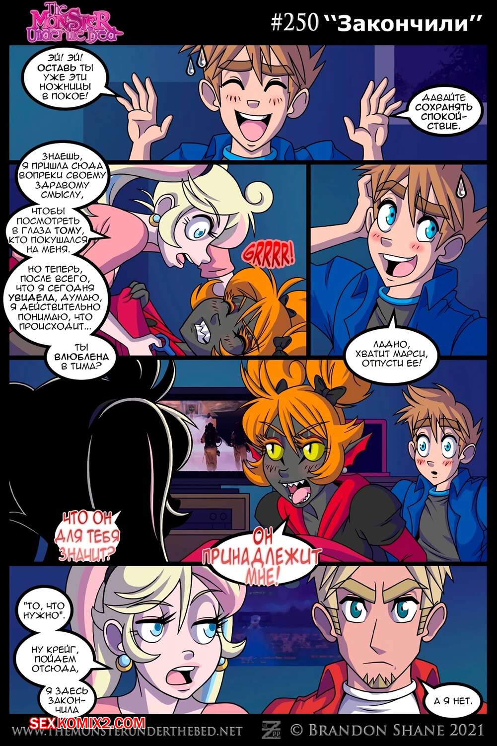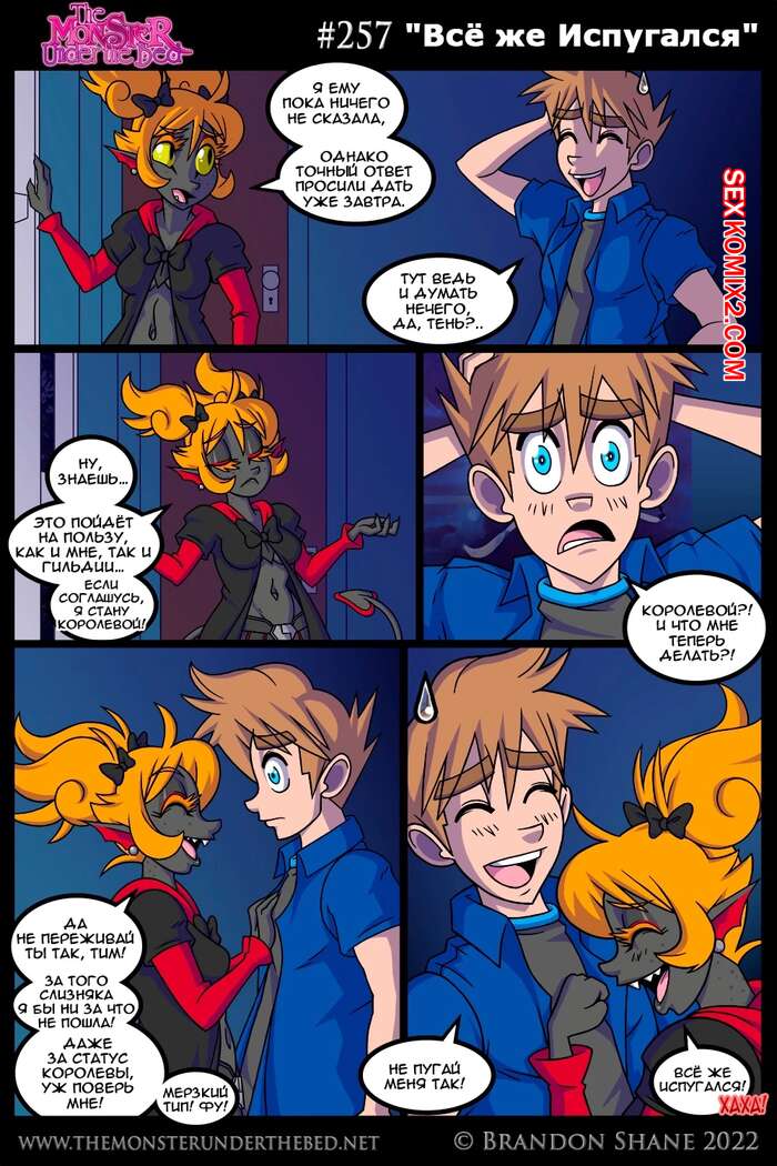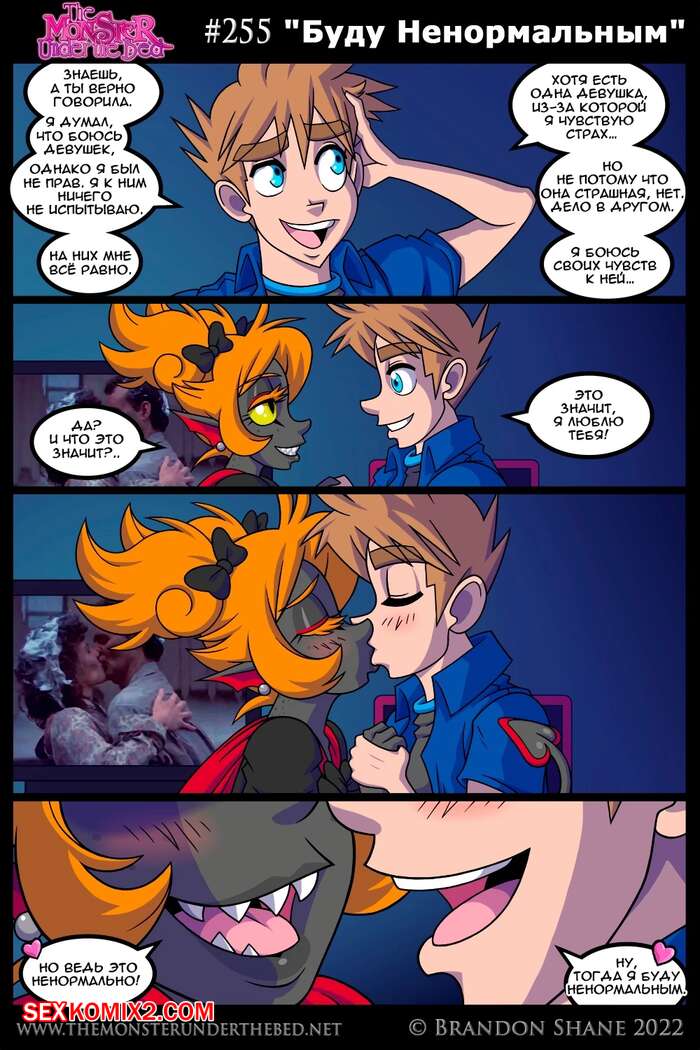 Порно комикс Монстр под кроватью. Часть 4. brandon shane Сексуальная брюнетка монстр была очень возбуждена и хотела трахаться. Она разделась перед парнем и стала сосать его большой хуй, после чего дала ему себя выебать.