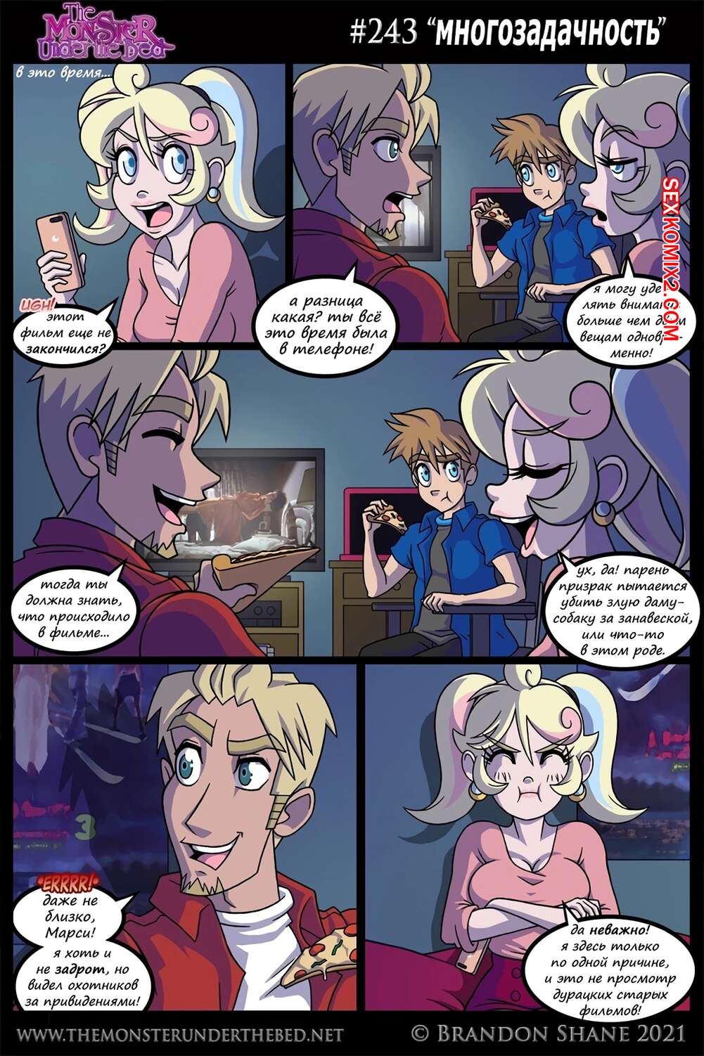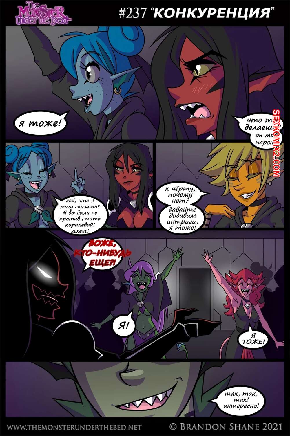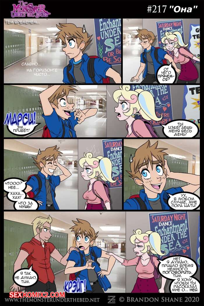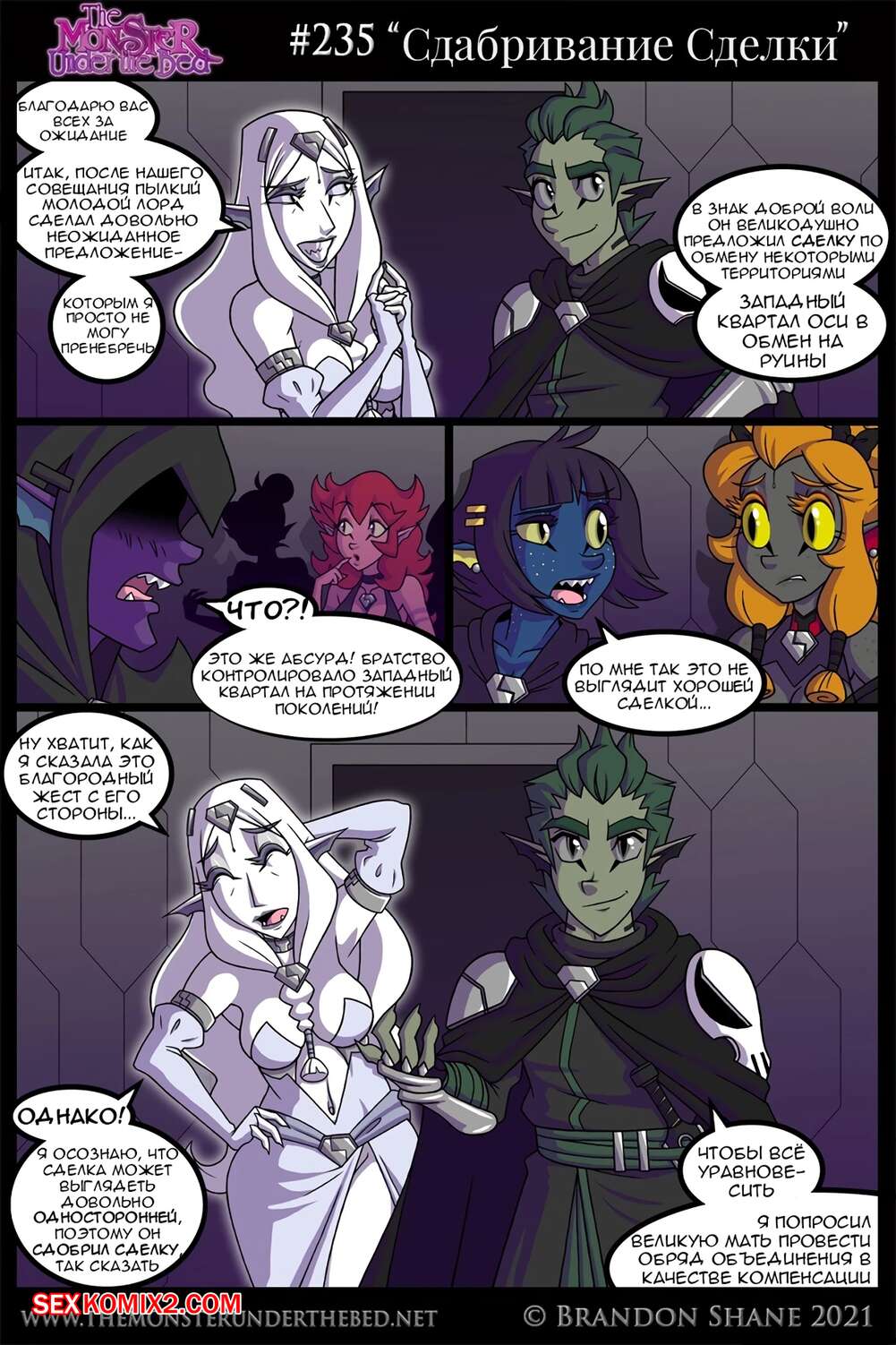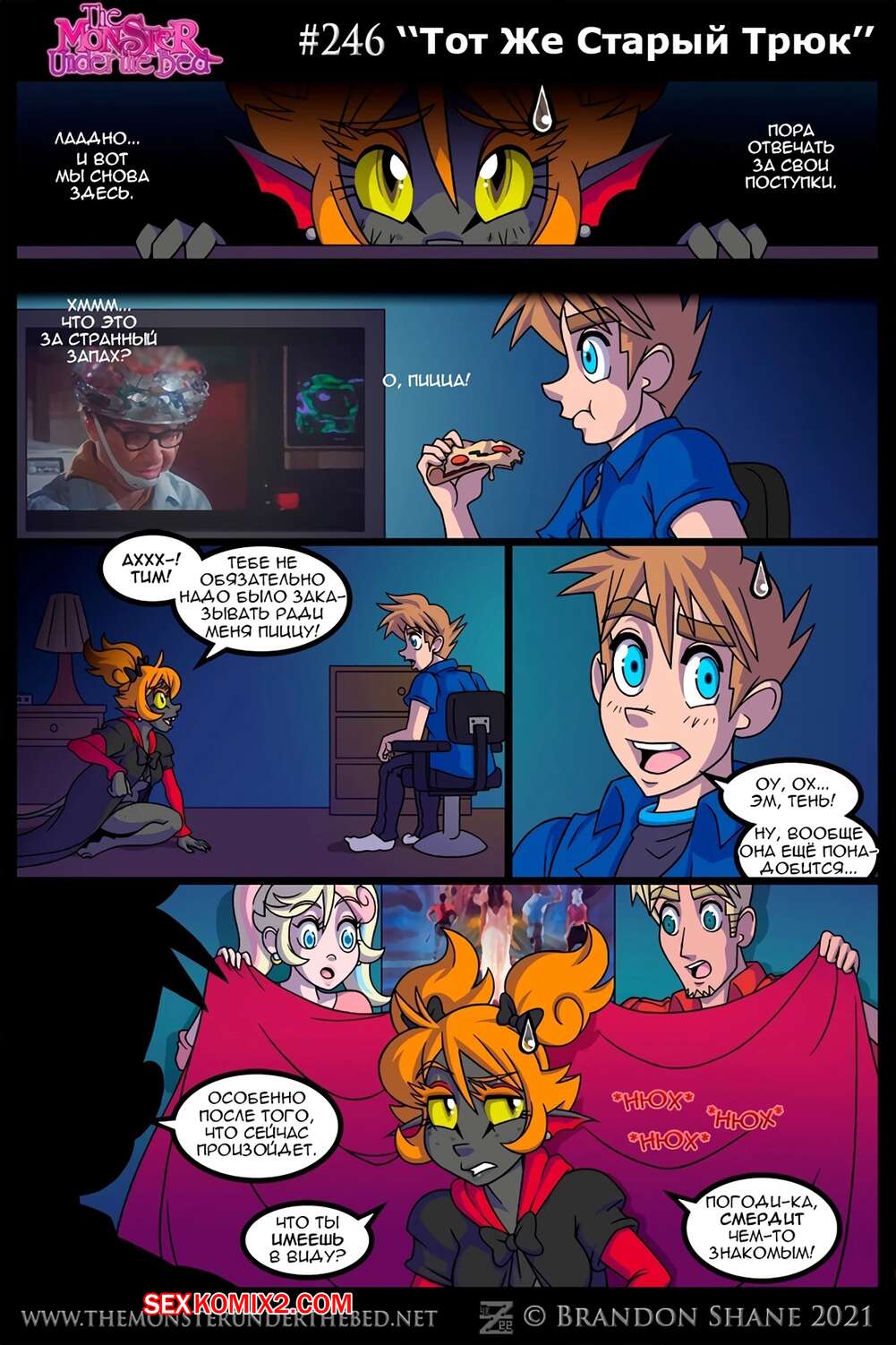 Порно комикс Монстр под кроватью. Часть 4. brandon shane Сексуальная брюнетка монстр была очень возбуждена и хотела трахаться. Она разделась перед парнем и стала сосать его большой хуй, после чего дала ему себя выебать.