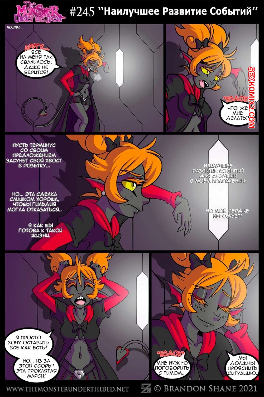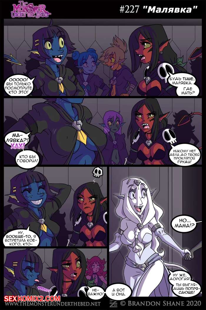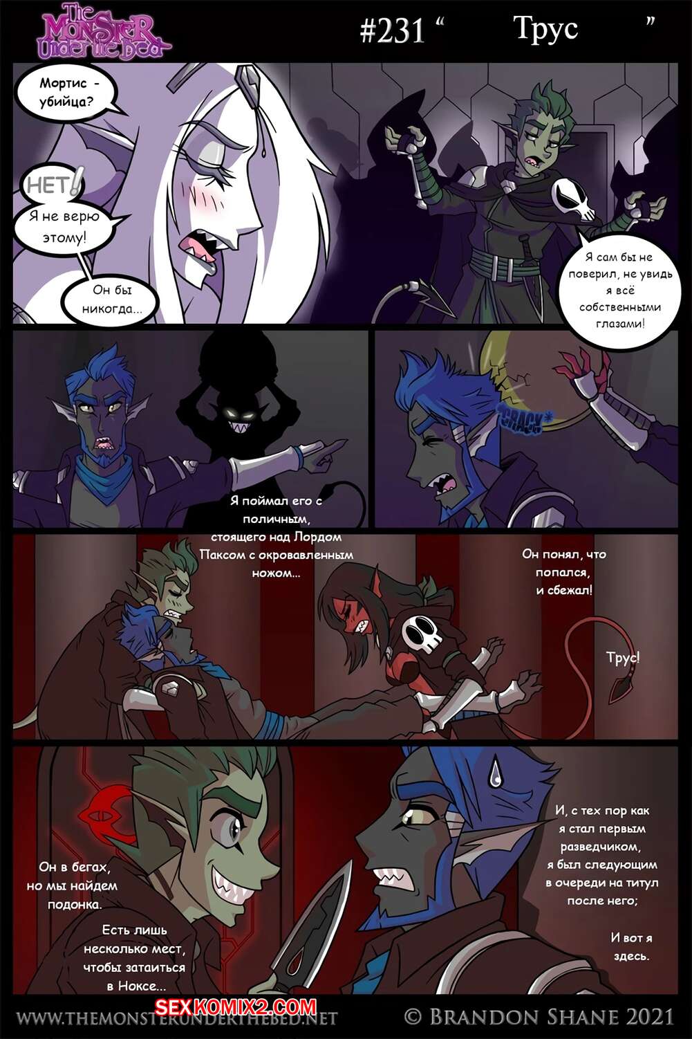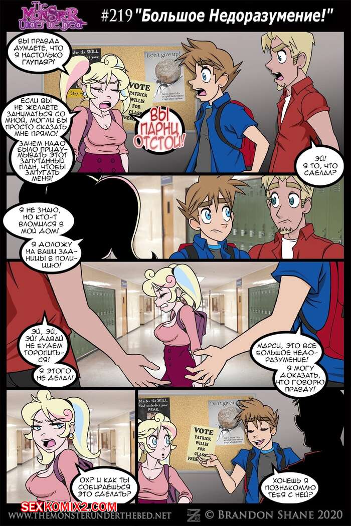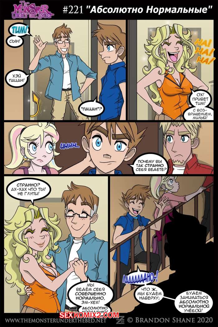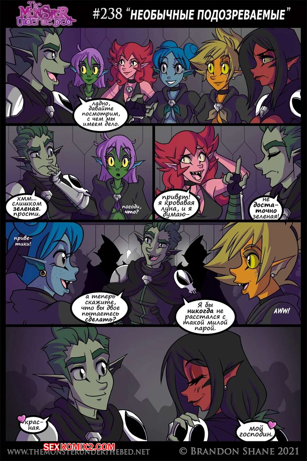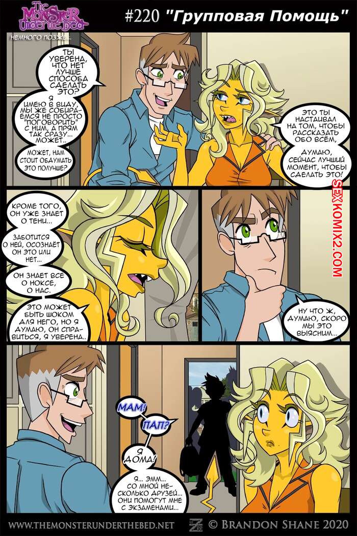 Порно комикс Монстр под кроватью. Часть 4. brandon shane Сексуальная брюнетка монстр была очень возбуждена и хотела трахаться. Она разделась перед парнем и стала сосать его большой хуй, после чего дала ему себя выебать.