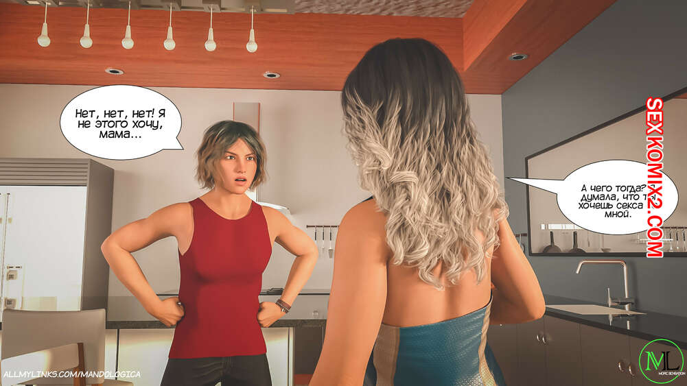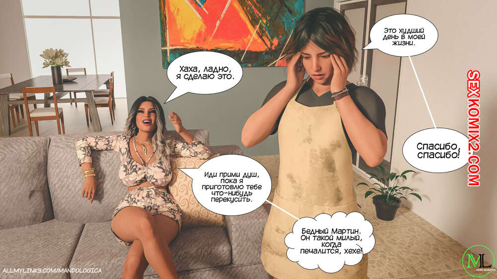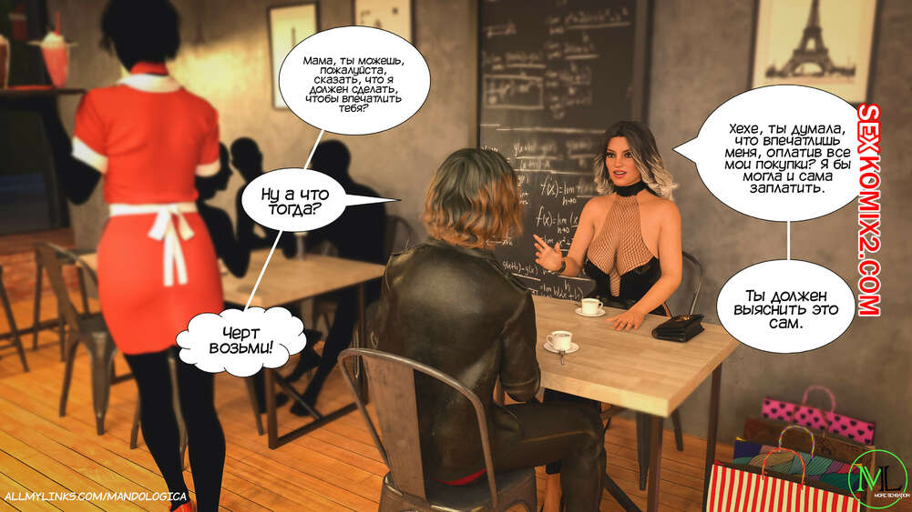 Порно комикс Все вместе. Часть 12. Teamwork. MandoLogica Мартин рассказал своей горячей мамке о том, что его сестренке требуется помощь в обучении отсосу. Мамка решила помочь дочери и сказала ей купить дилдо для тренировок.