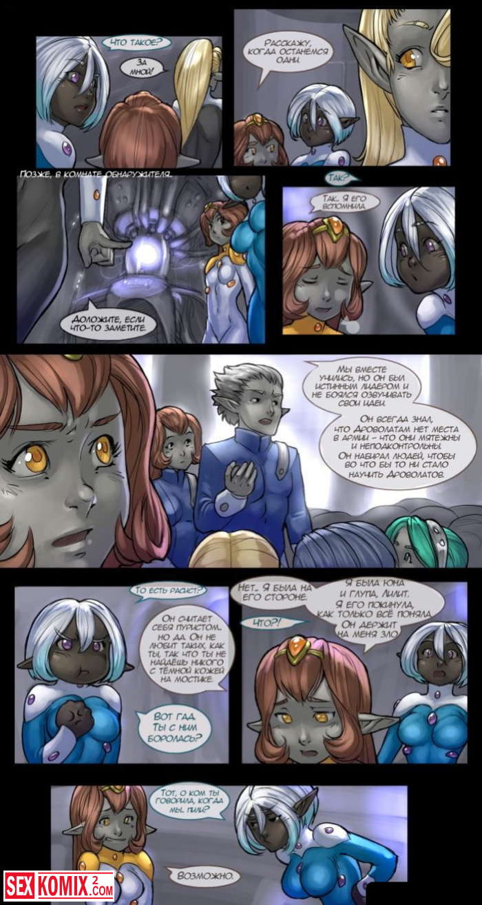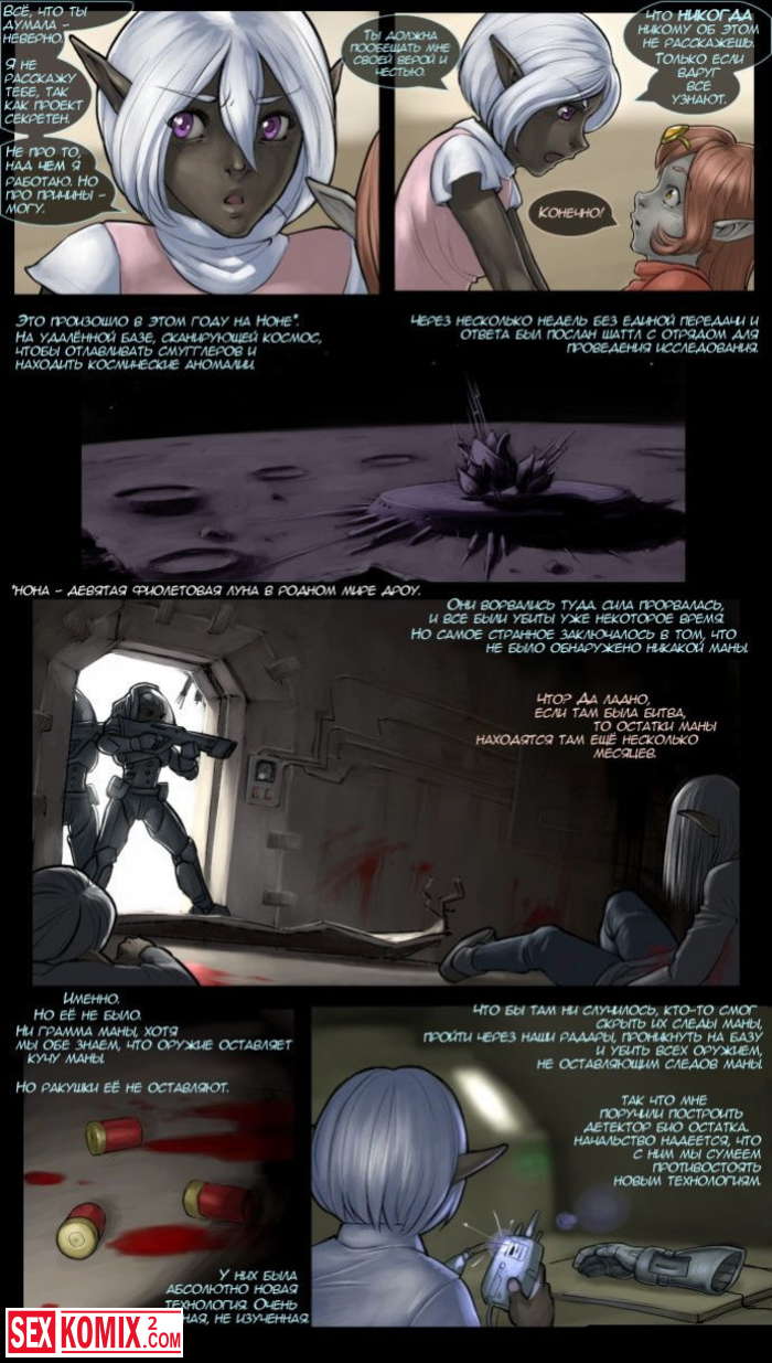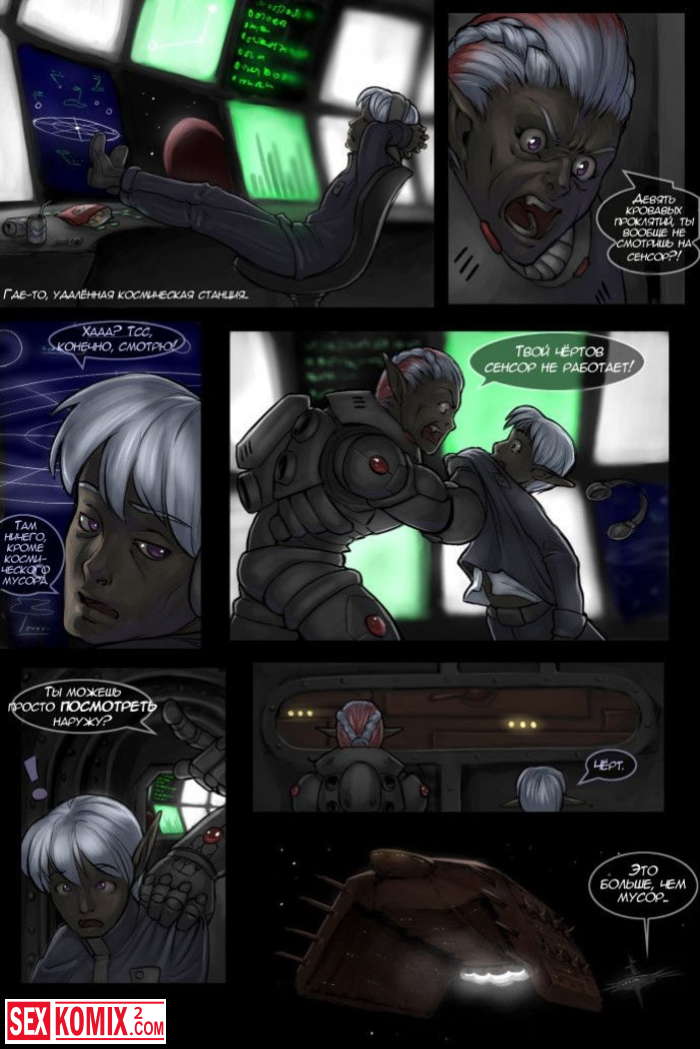 Порно комикс Истории Дроу. Космический Век. Раса темных эльфов вынуждена была покинуть свою родную планету и улететь в космос, где ещё больше опасностей.