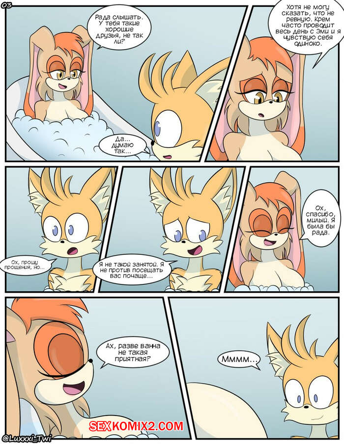 Порно комикс Соник. Сладкий как ваниль. Sweet Like Vanilla. Luxxxi Сексуальная милфа пригласила молодого парня принять с ней ванну. Там она дала ему поласкать свои большие сиськи и отсосала хуй парня. Красотка отвела парня на кровать, где дала ему себя хорошенько выебать.