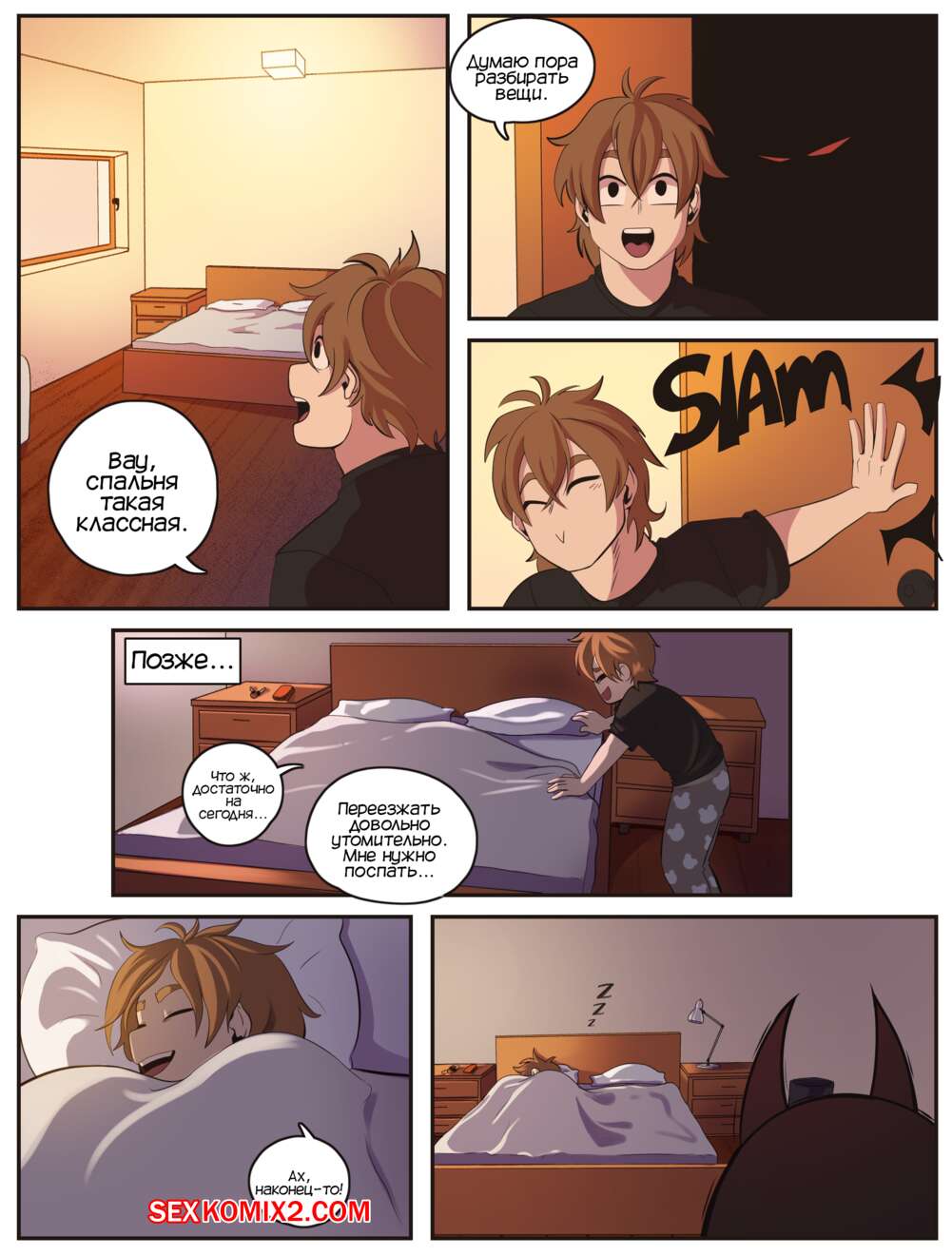 Порно комикс Грехи. Sins. Kabi666 Молодой парень заехал в новый только что купленный дом и лег поспать. К нему стала приставать сексуальная девушка демон, которая отсосала его большой хуй и дала ему себя выебать.