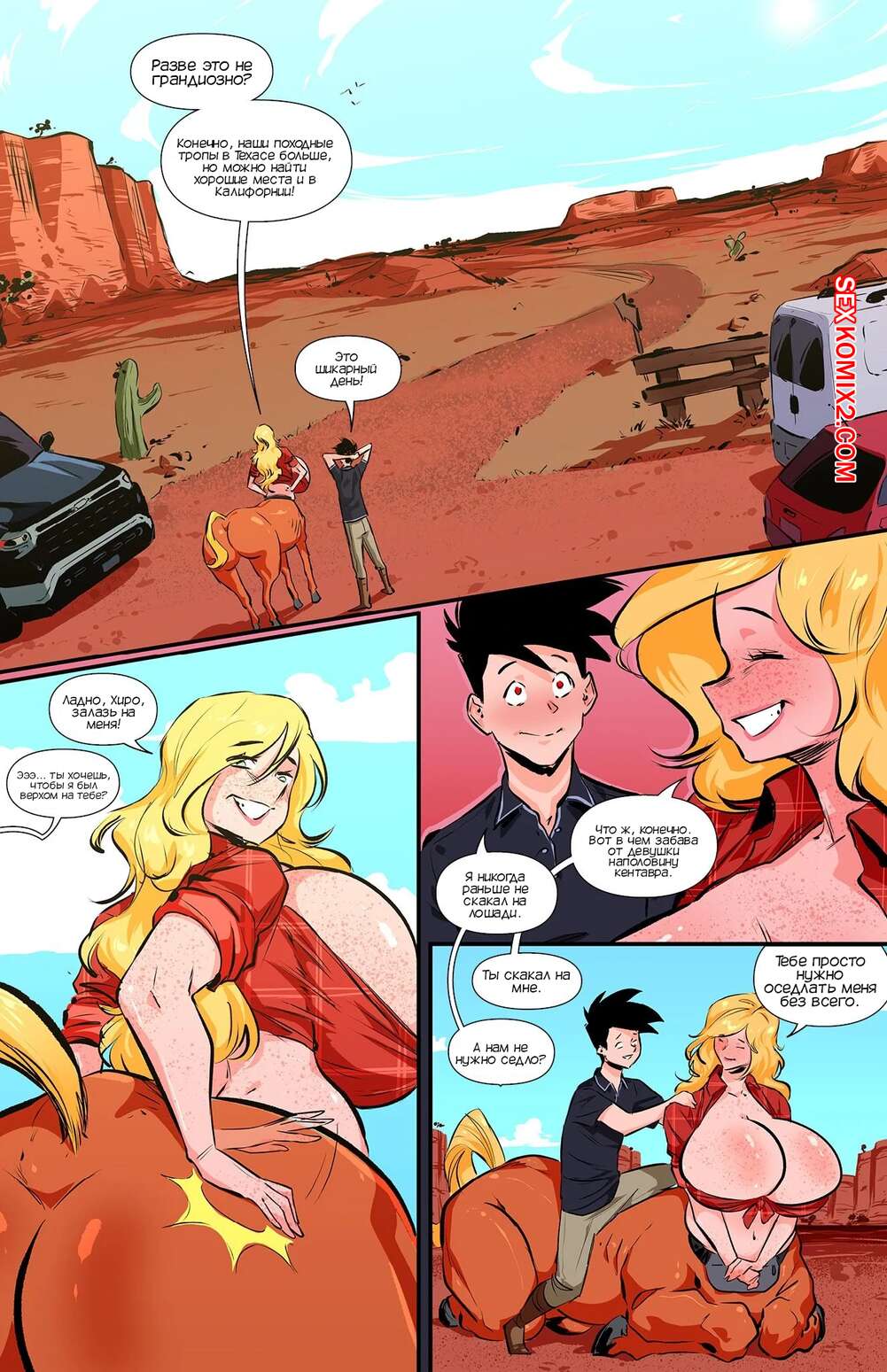Порно комикс Академия девушек монстров. Часть 23. Monster Girl Academy. Worky Zark Сексуальная блондинка кентавр позвала парня с собой на пробежку, после чего они решили немного расслабиться и повеселиться. Красотка стала ласкать хуй парня, после чего дала ему себя выебать.
