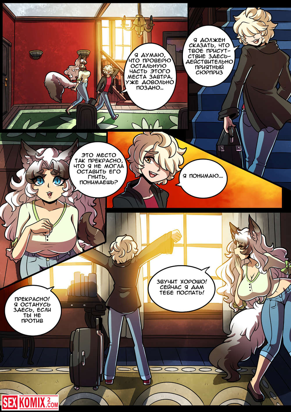 Порно комикс Feline Chateau. Фурри красотка пришла к своему другу в комнату по среди ночь и села на его член.