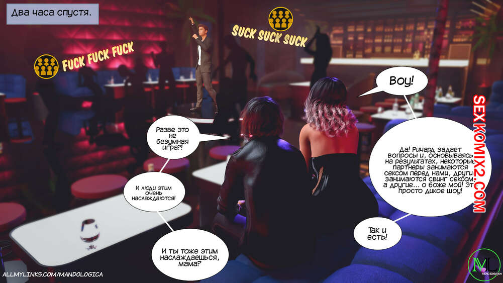 Порно комикс Все вместе. Часть 13. Teamwork. MandoLogica. Мартин и Каролина пошли в ночной клуб, куда их пригласили. Там они начали смотреть откровенное шоу, после чего стали участниками основного выступления.