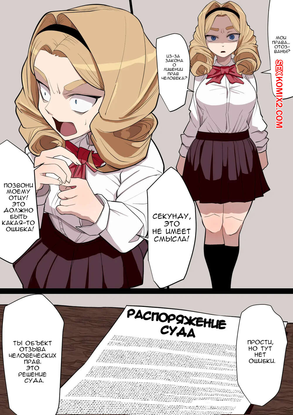 Порно комикс Молодая леди, лишенная прав человека. Wakabatei Сексуальная блондинка лишилась прав и парень решил этим воспользоваться по полной. Он раздел девушку и дал ей отсосать свой большой хуй, после чего хорошенько ее выебал.