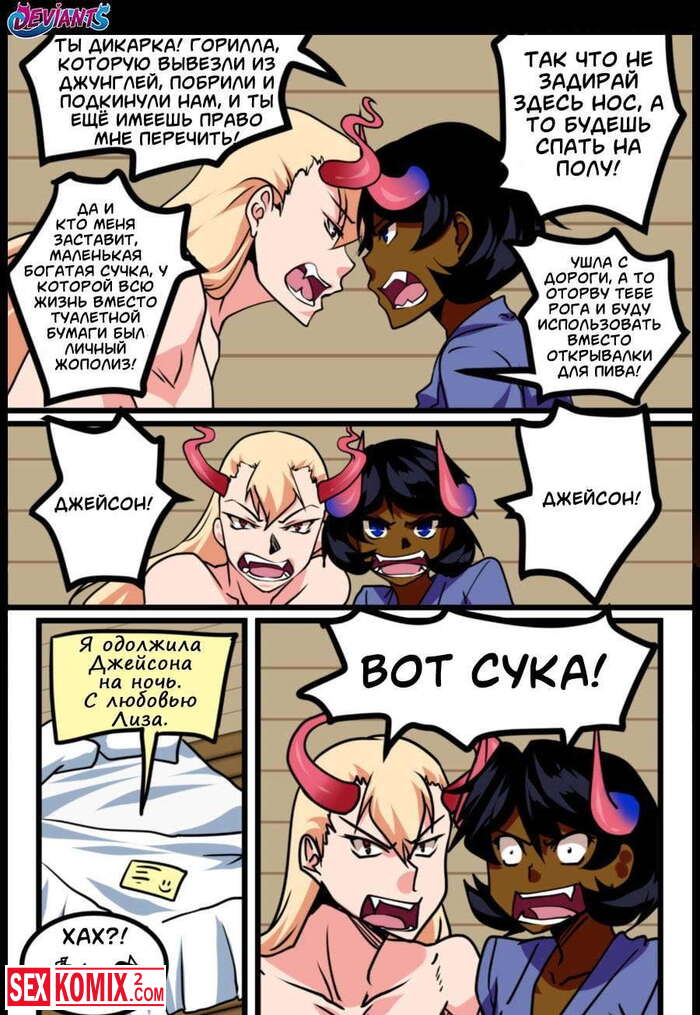 Порно комикс Извращенцы. Часть 5. Вся правда. В борьбу за член этого парня вступила ещё одна красотка с розовыми волосами и успешно соблазнила его.