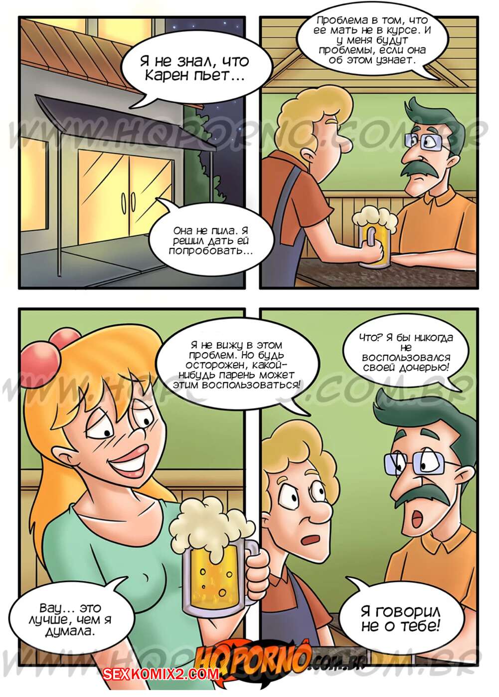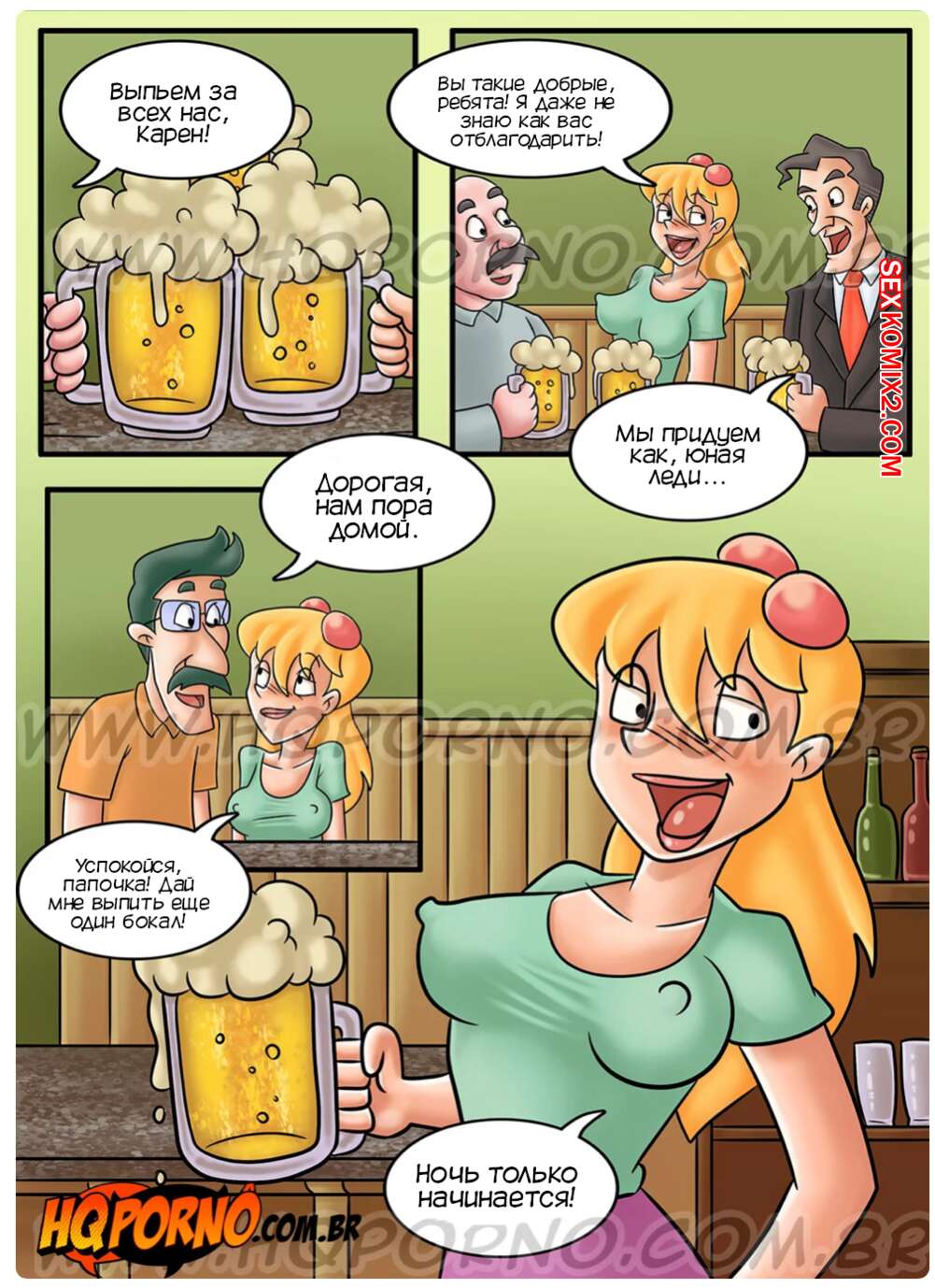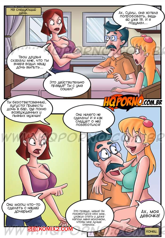 Порно комикс Папина дочка. Часть 8. Filhinha de papai. HQporno Аугусто сводил Карен в бар, после чего девушка легла спать. Мужчина решил пошалить с дочкой и стал массировать ее сиськи. Девушки проснулась и папочка выебал ее во все дырочки, кончая ей в ротик.