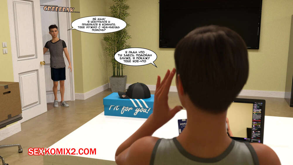 Порно комикс Как стать порнозвездой. Часть 2. How to become a pornstar. Nethoc Сексуальная брюнетка милфа зашла в комнату к своему сыну и застала его за дрочкой. Мамочка решила помочь сыну кончить, поэтому она оголила для него свои большие сиськи, нереально возбудив парня.