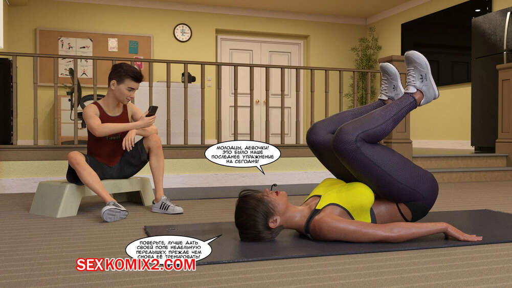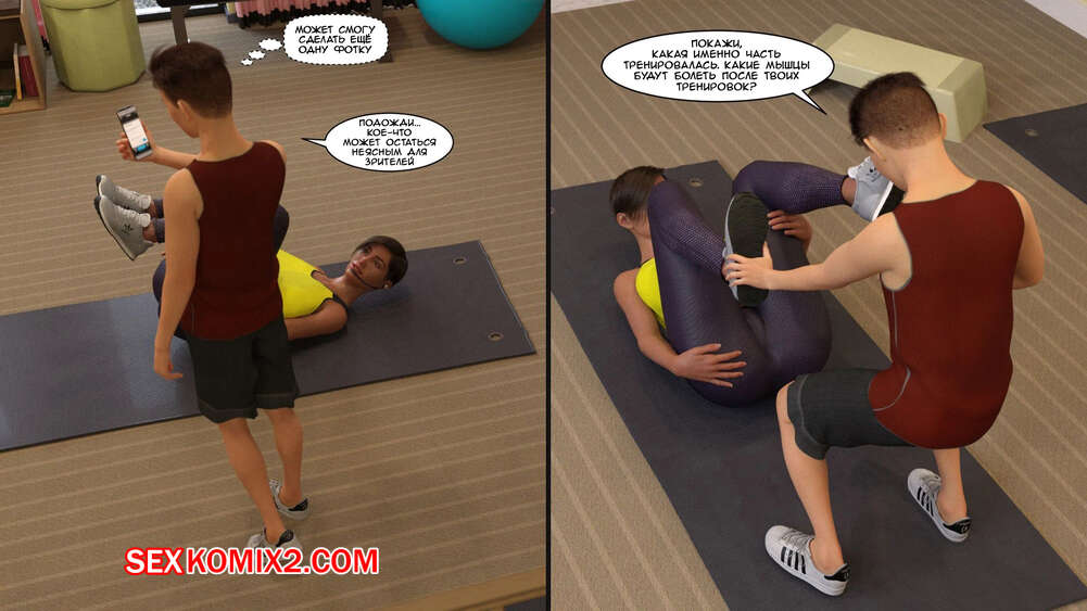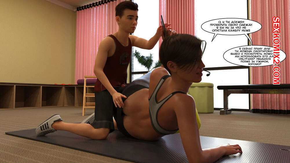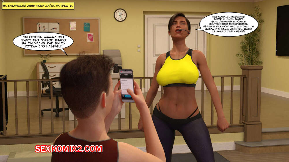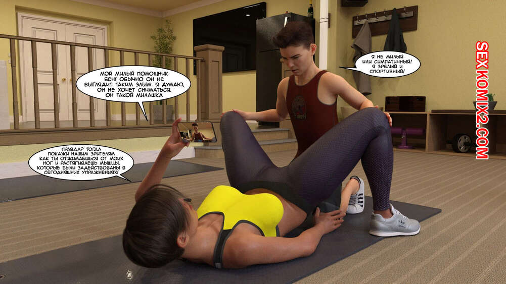 Порно комикс Как стать порнозвездой. Часть 3. How to become a pornstar. Nethoc Горячая мамка осталась дома наедине со своим сыном и попросила его ей помочь. Красотка стала выполнять упражнения, а парень помогал ей и снимал все на видео.