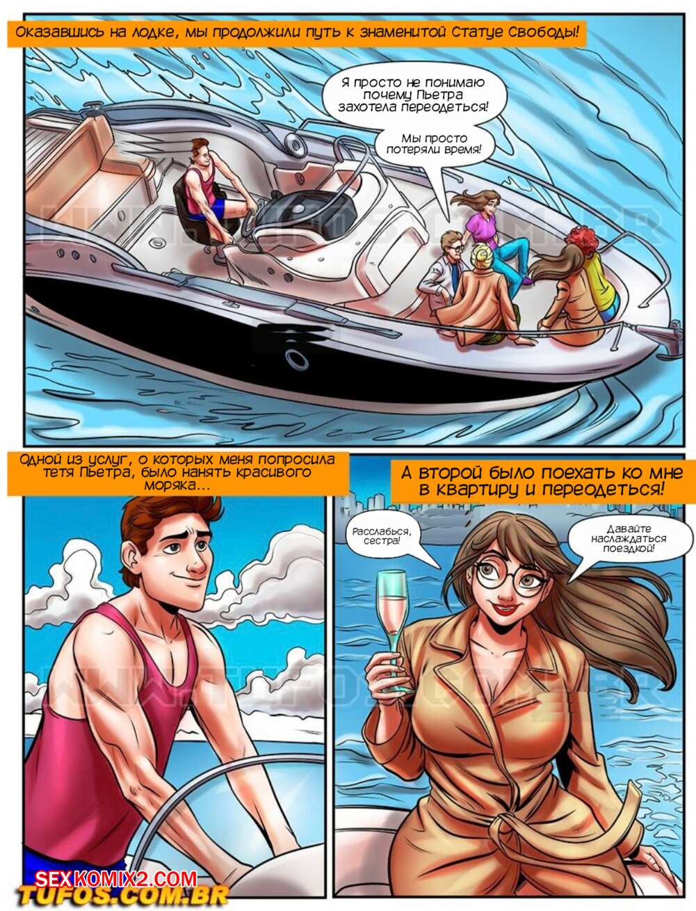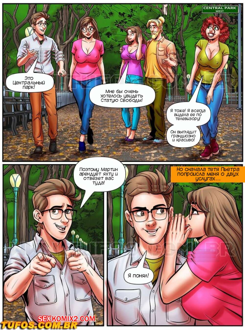 Порно комикс Лакомство заучки. Часть 46. Свобода. O nerd comedor. Tufos Мартин со своей семьей отправился на поездку на яхте к Статуе Свободы. Там они решили повеселиться, поэтому все разделись и занялись страстной групповой еблей.