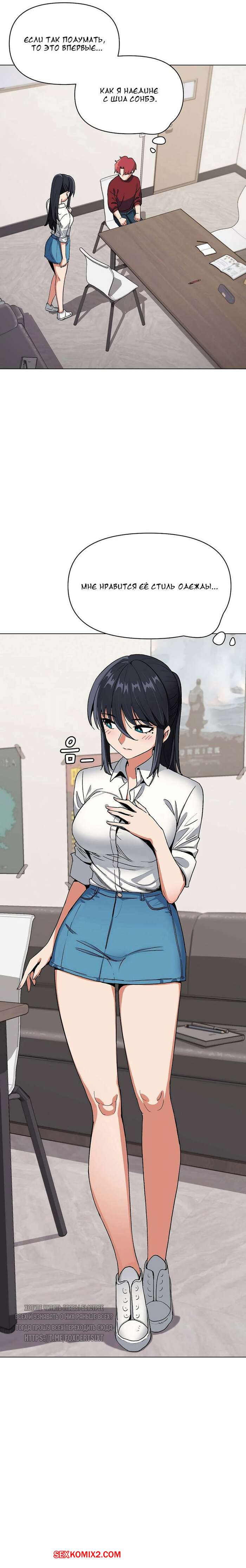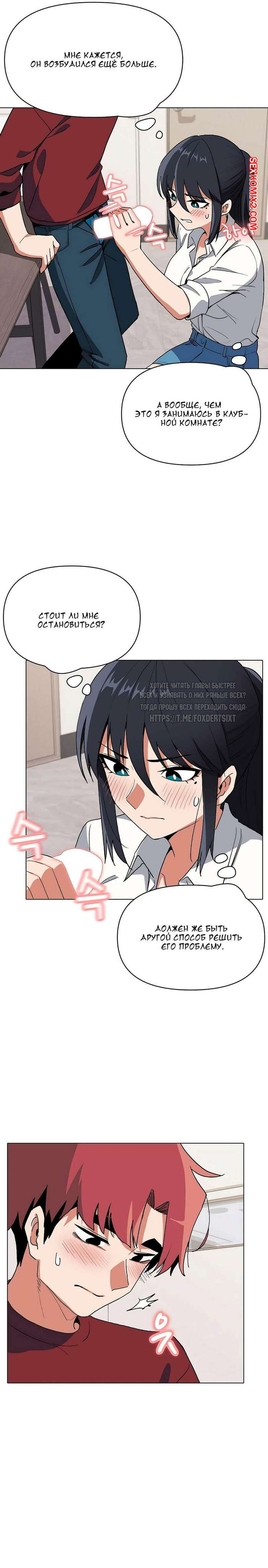 Порно комикс Студенческая жизнь начинается с клуба. Части 4 и 5 и 6. An Outsiders Way In Парень остался наедине с горячей сексуальной брюнеткой из своего клуба и сильно возбудился. Девушка заметила стояк парня, поэтому встала на колени и стала дрочить его член.