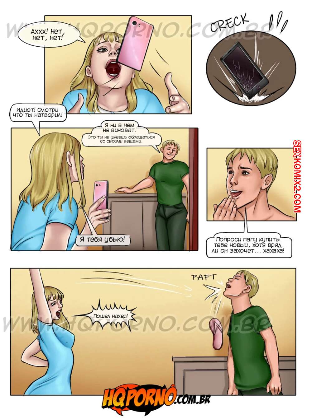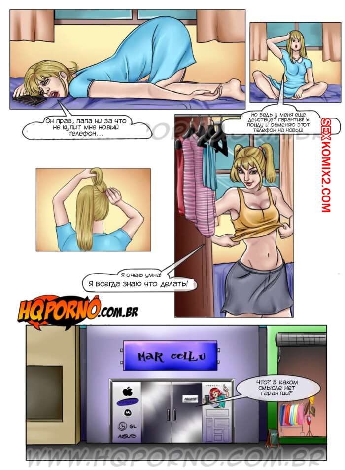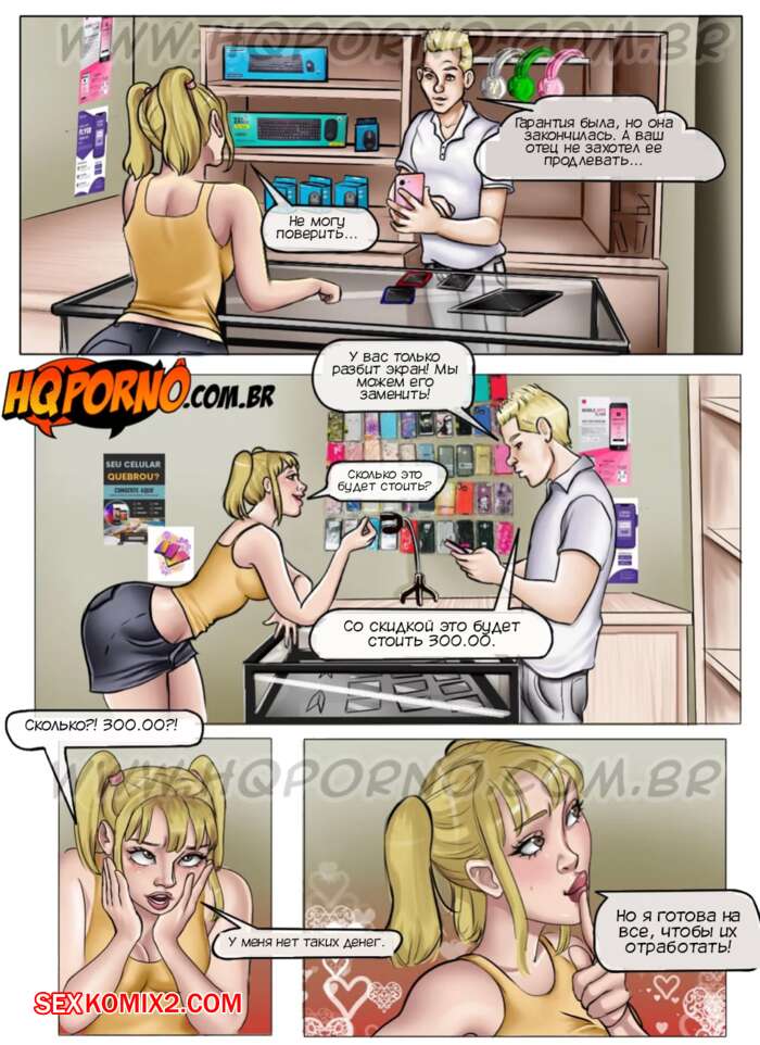 Порно комикс Инцест на ферме. Часть 14. As camponesas. HQporno Сексуальная блондинка разбила телефон и пошла в магазин, чтобы поменять его по гарантии. Продавец сообщил, что гарантии нет, но он может поменять стекло. У девушки не было на это денег, поэтому она дала парню себя выебать.