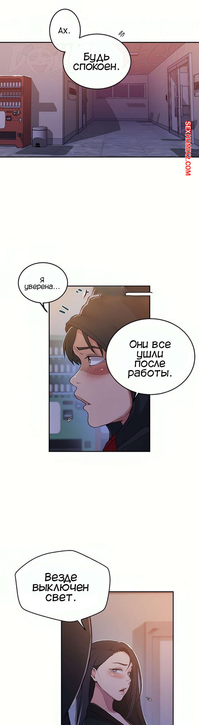 Порно комикс Тайное обучение. Часть 193. Secret Class Парень с девушкой ночью пробрались в компанию мужа девушки. Парень возбудился при виде ее шикарного тела в платье, поэтому он поскорее раздел ее и выебал ее пизденку.