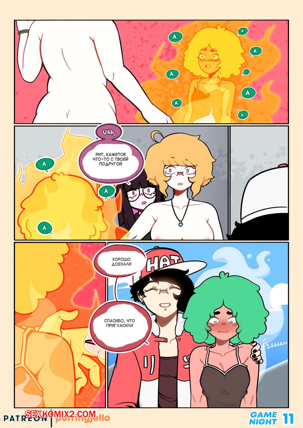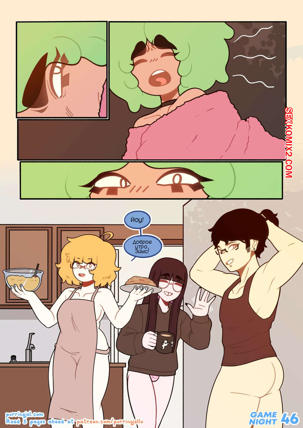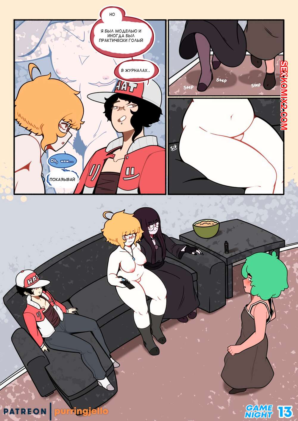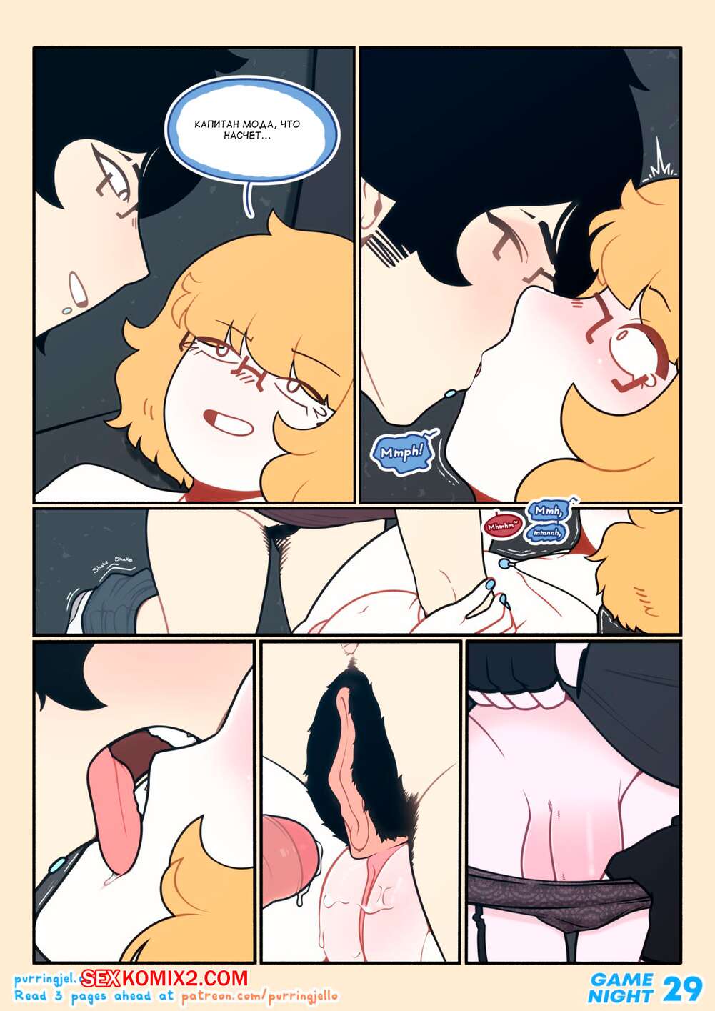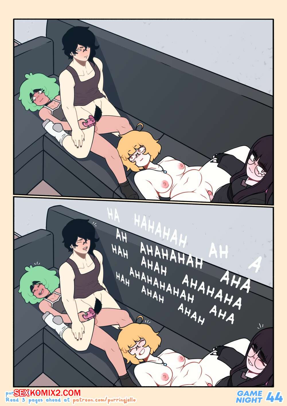 Порно комикс Ночная игра. Game Night.purringjello. Горячие подруги устроили ночь игр. Девушки были очень возбуждены и хотели трахаться, поэтому они разделись и стали ласкать друг дружку, после чего занялись групповой еблей.