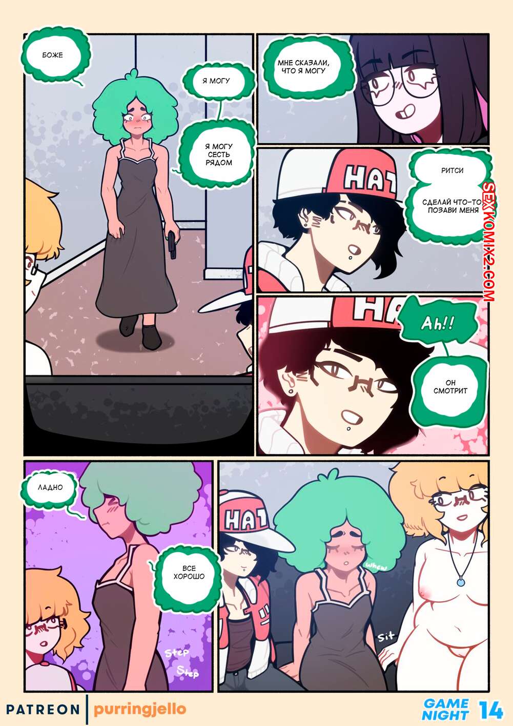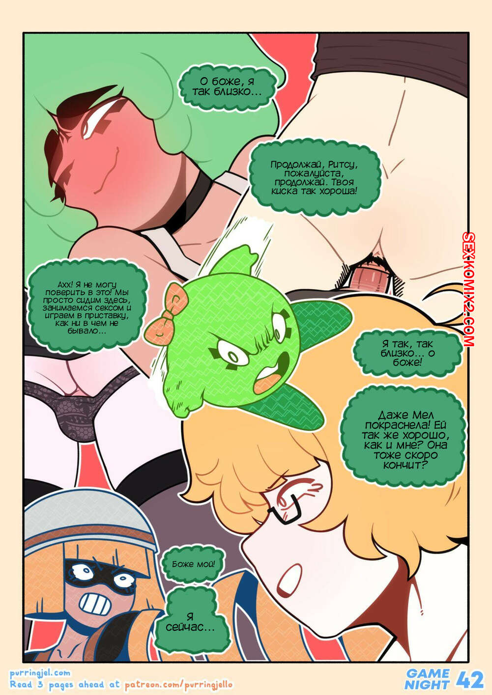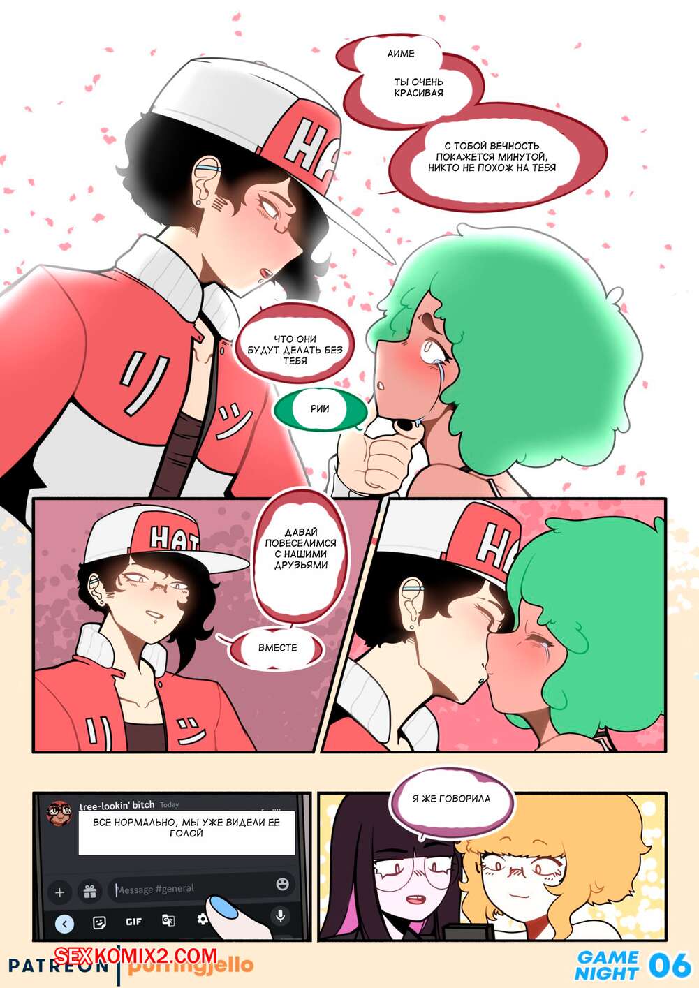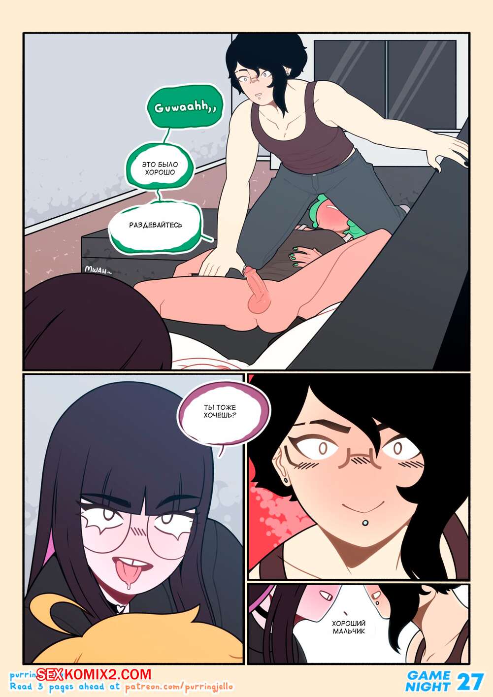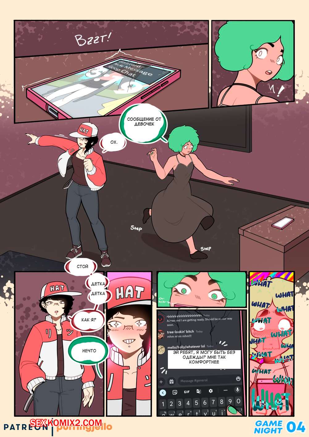 Порно комикс Ночная игра. Game Night.purringjello. Горячие подруги устроили ночь игр. Девушки были очень возбуждены и хотели трахаться, поэтому они разделись и стали ласкать друг дружку, после чего занялись групповой еблей.