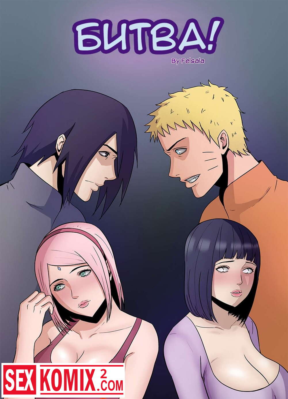 Порно комикс Битва. Между парнями возник спор кто лучше Хината или Сакура, и что бы это проверить, нужно трахнуть девушек.