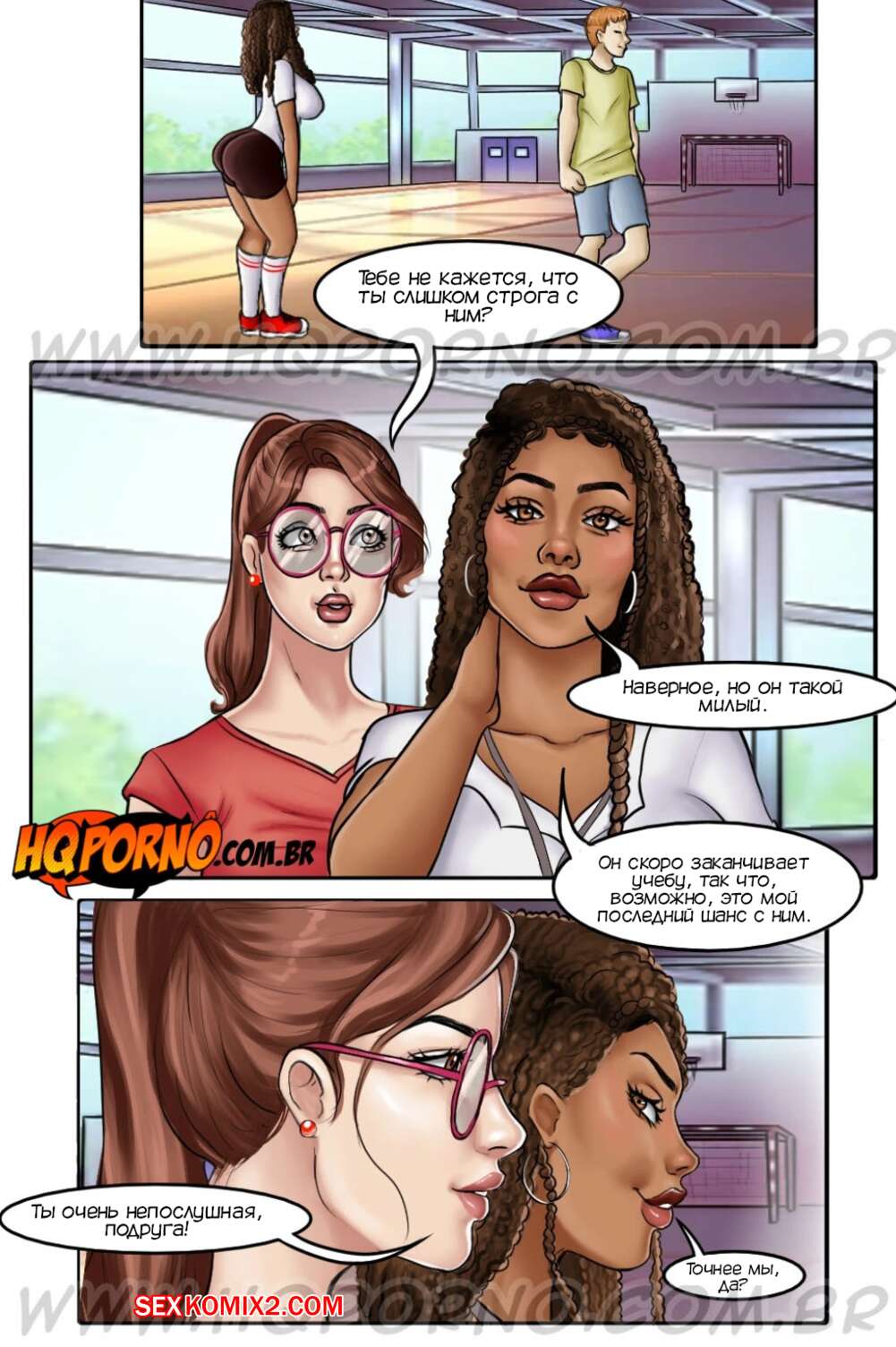 Порно комикс Профессор Сибелли. Часть 3. Professora Cibbely. HQPorno Темнокожая училка физкультуры вызвала ученика к себе в кабинет. Он рассказал ей, что у него большой хуй, и училка решила сама увидеть его. Красотка возбудилась перед огромным членом и стала отсасывать парню, после чего дала ему себя выебать.