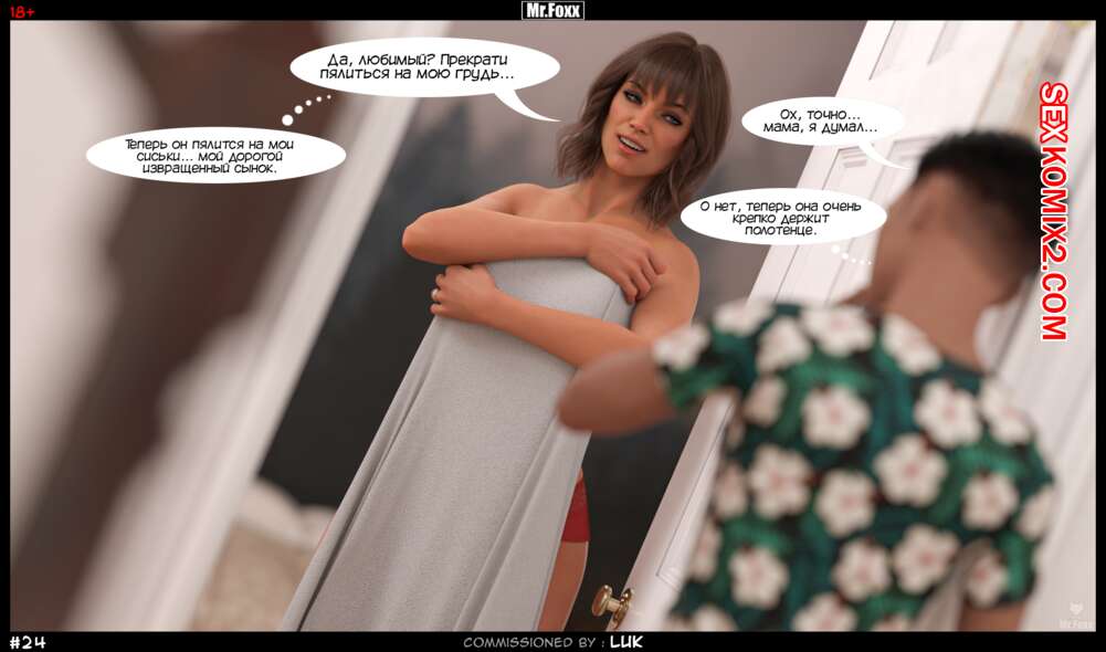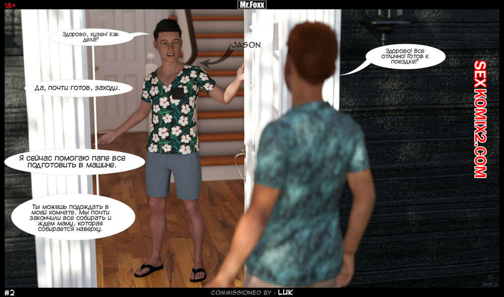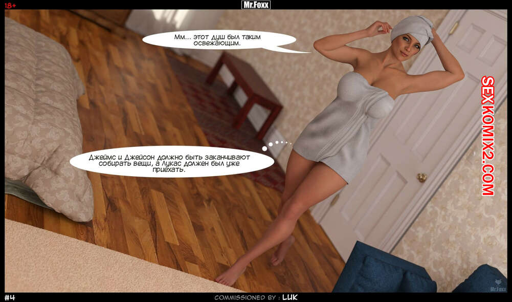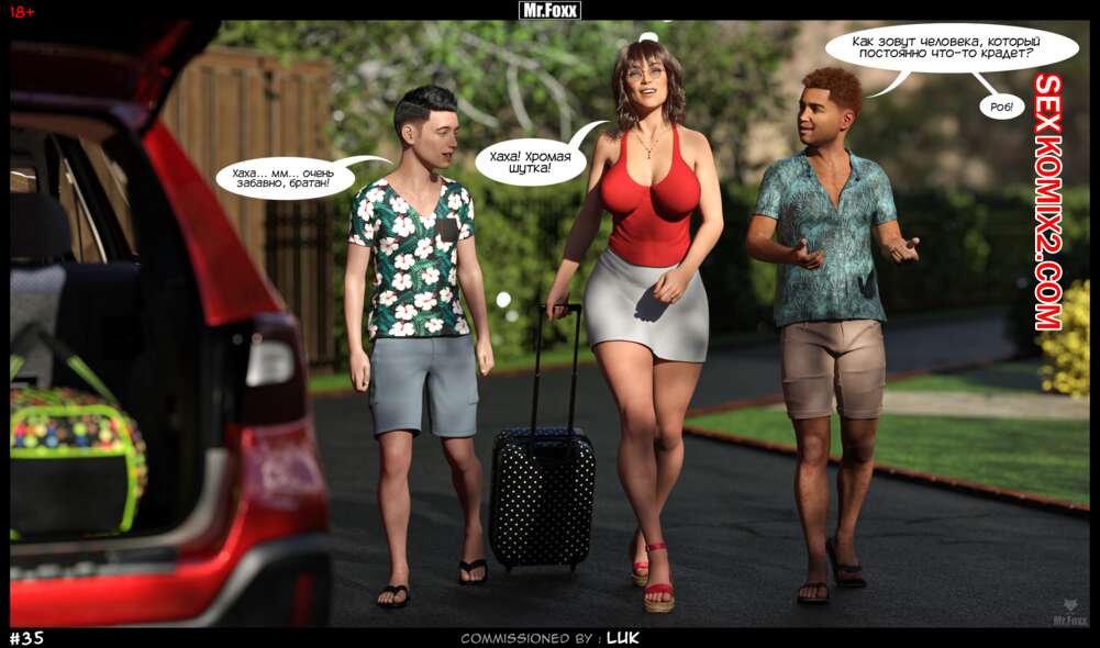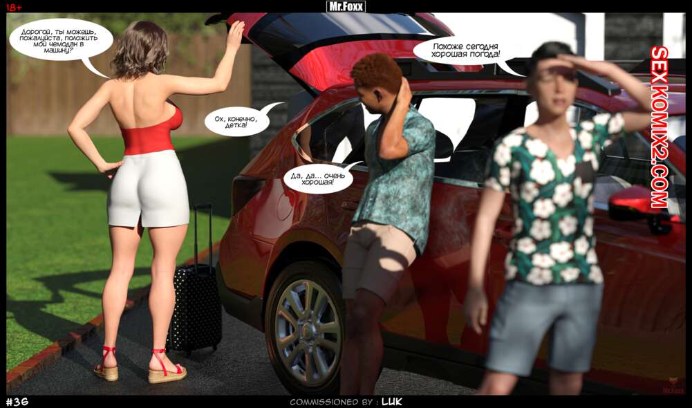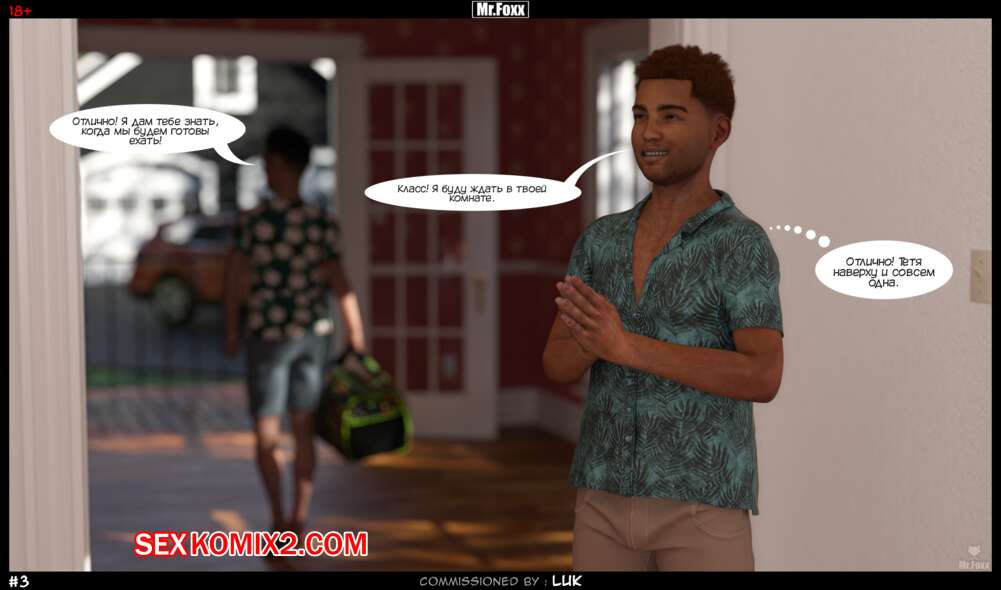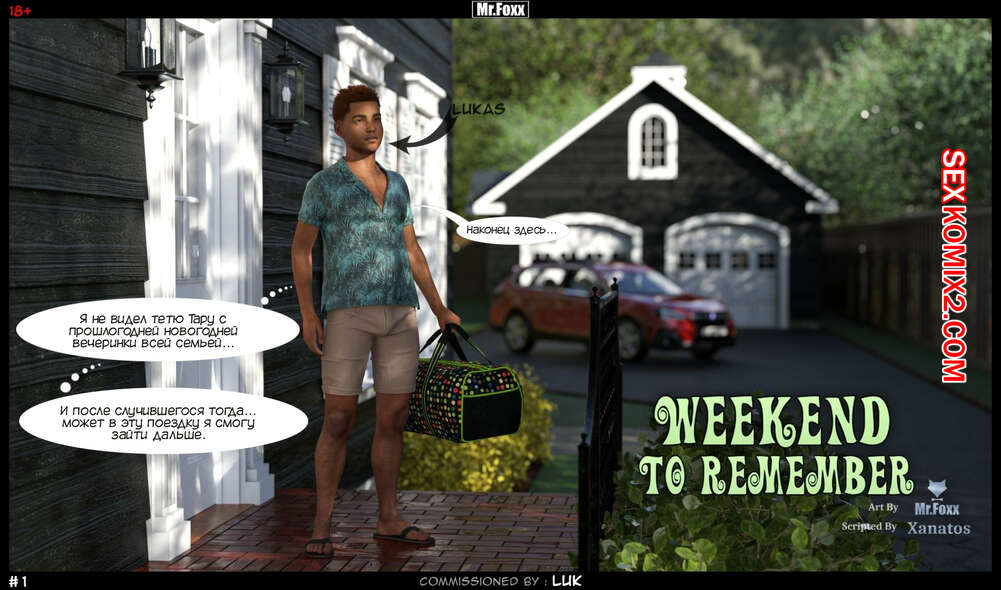 Порно комикс Выходные для воспоминаний. Weekend to Remember. Mr. Foxx Лукас приехал домой к своей тете, чтобы отправиться вместе с ее семьей в поездку. Пока кузен парня с отцом готовили машину к поездке, Лукас отправился в комнату к тете, где застал ее только после душа.