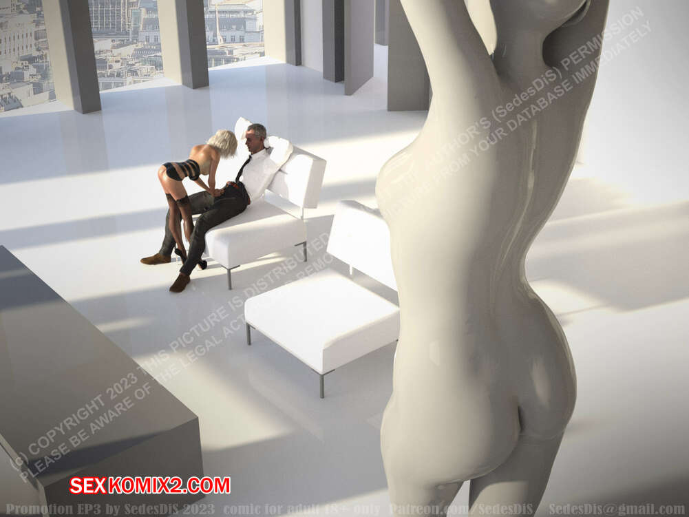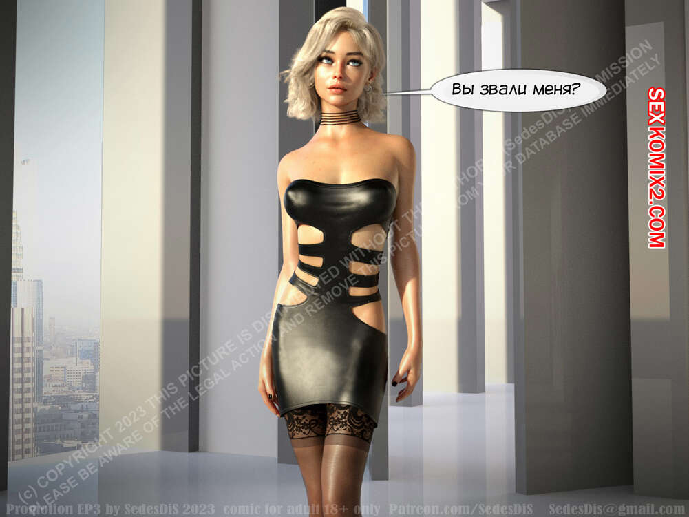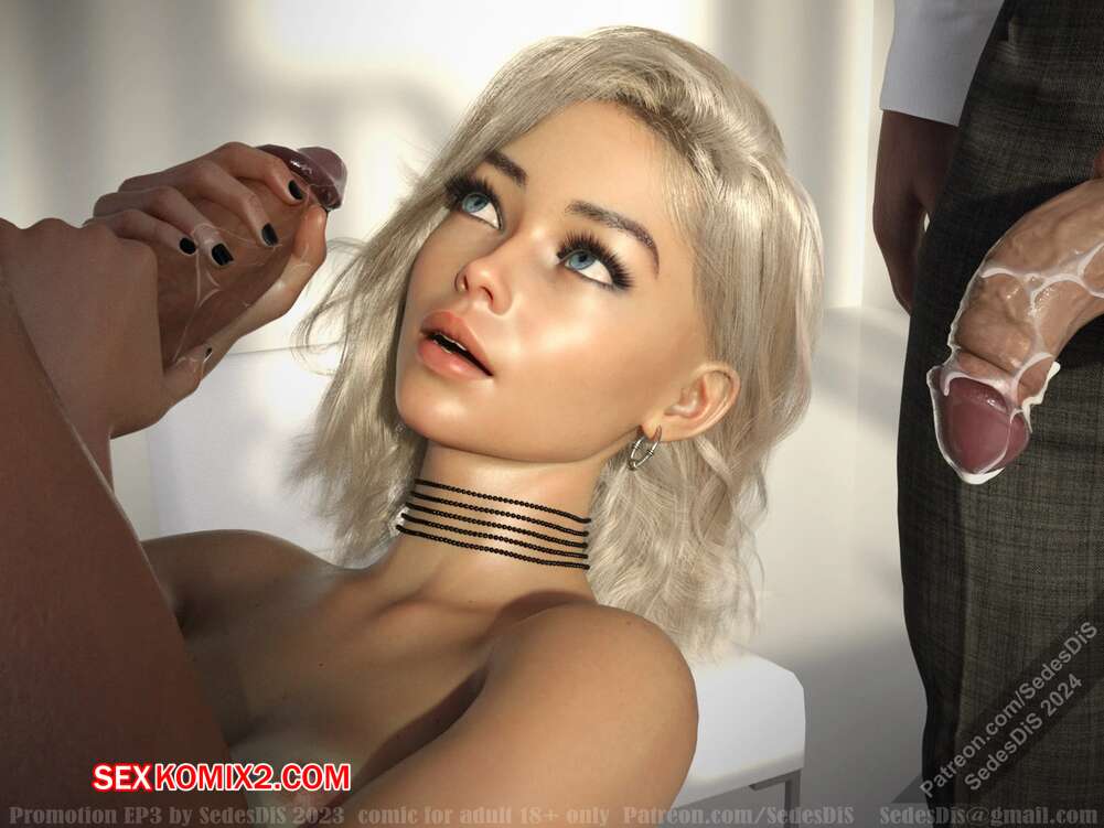 Порно комикс Повышение. Promotion. Часть 3. SedesDiS Горячая блондинка отправилась в бизнес центр, чтобы завести себя влиятельного друга. Красотка пришла в кабинет к мужчине, перед которым горячая блондинка стояла на коленях и сосала его член.