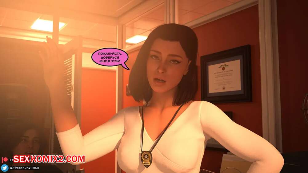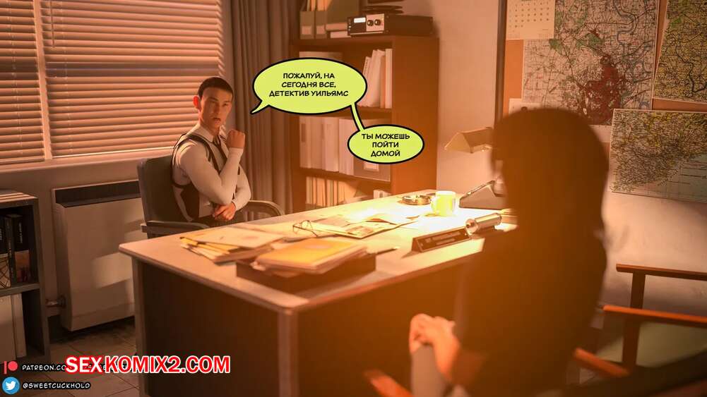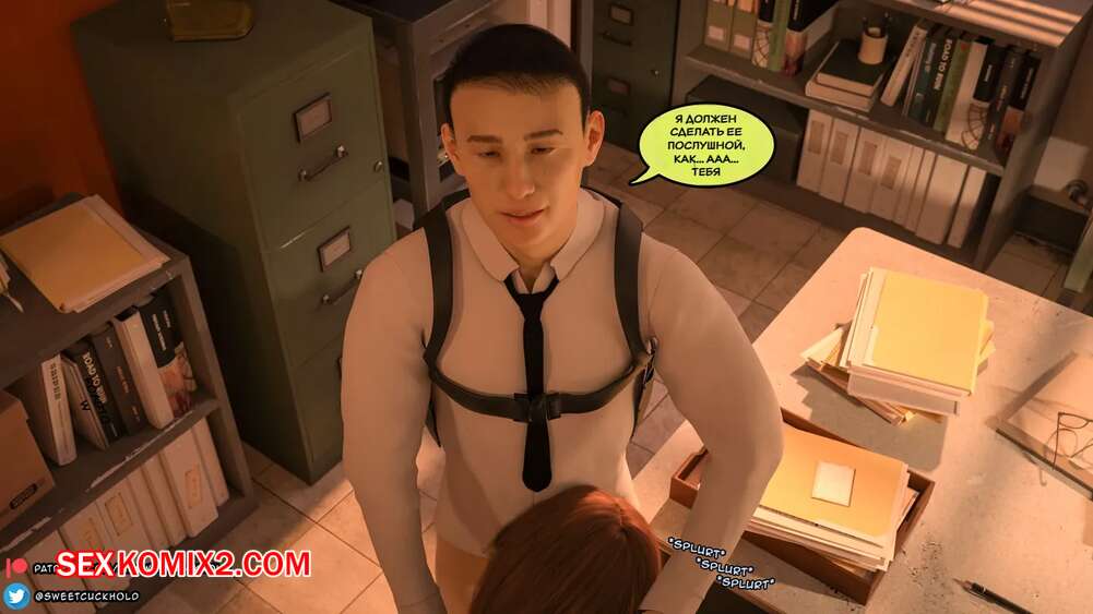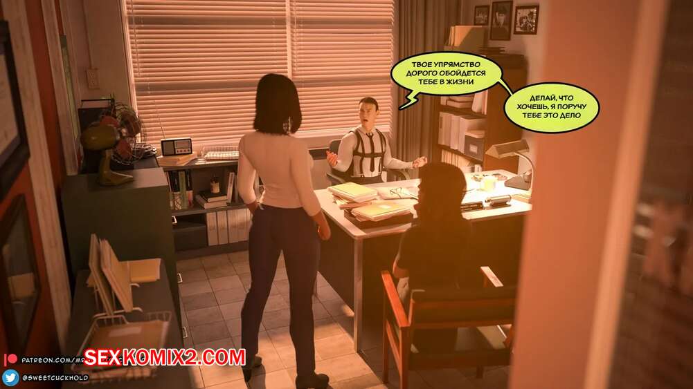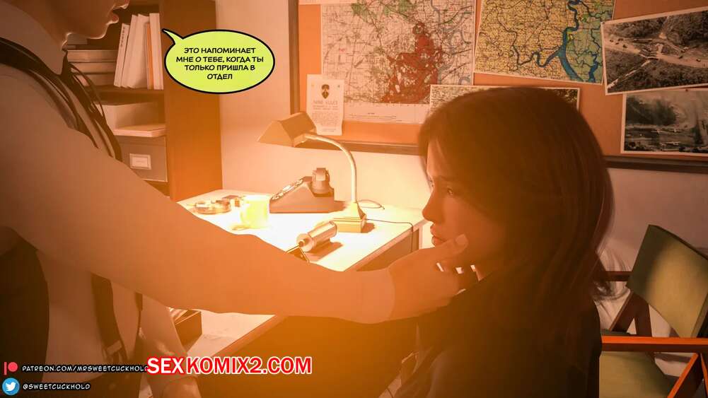 Порно комикс Тайное предательство. Часть 1. Undercover Betrayal. Mr.SweetCuckhold. Горячая сексуальная брюнетка осталась наедине с боссом в его кабинете. Он хотел расслабиться, поэтому девушка встала на колени и стала сосать его хуй, после чего получила сперму на свое лицо.