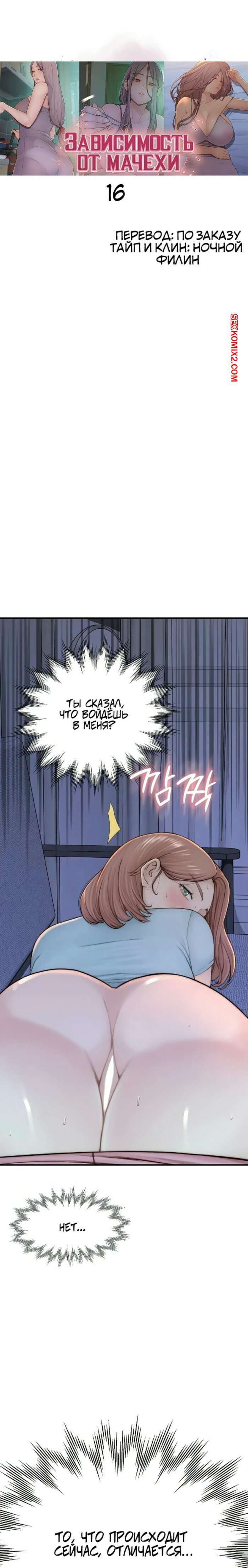 Порно комикс Зависимость от мачехи. Часть 16 и 17 и 18. Addicted to my stepmother Парень был очень возбужден и хотел трахаться. Он стянул трусики со своей мачехи и вставил в нее свой большой хуй, после чего хорошенько выебал милфу.