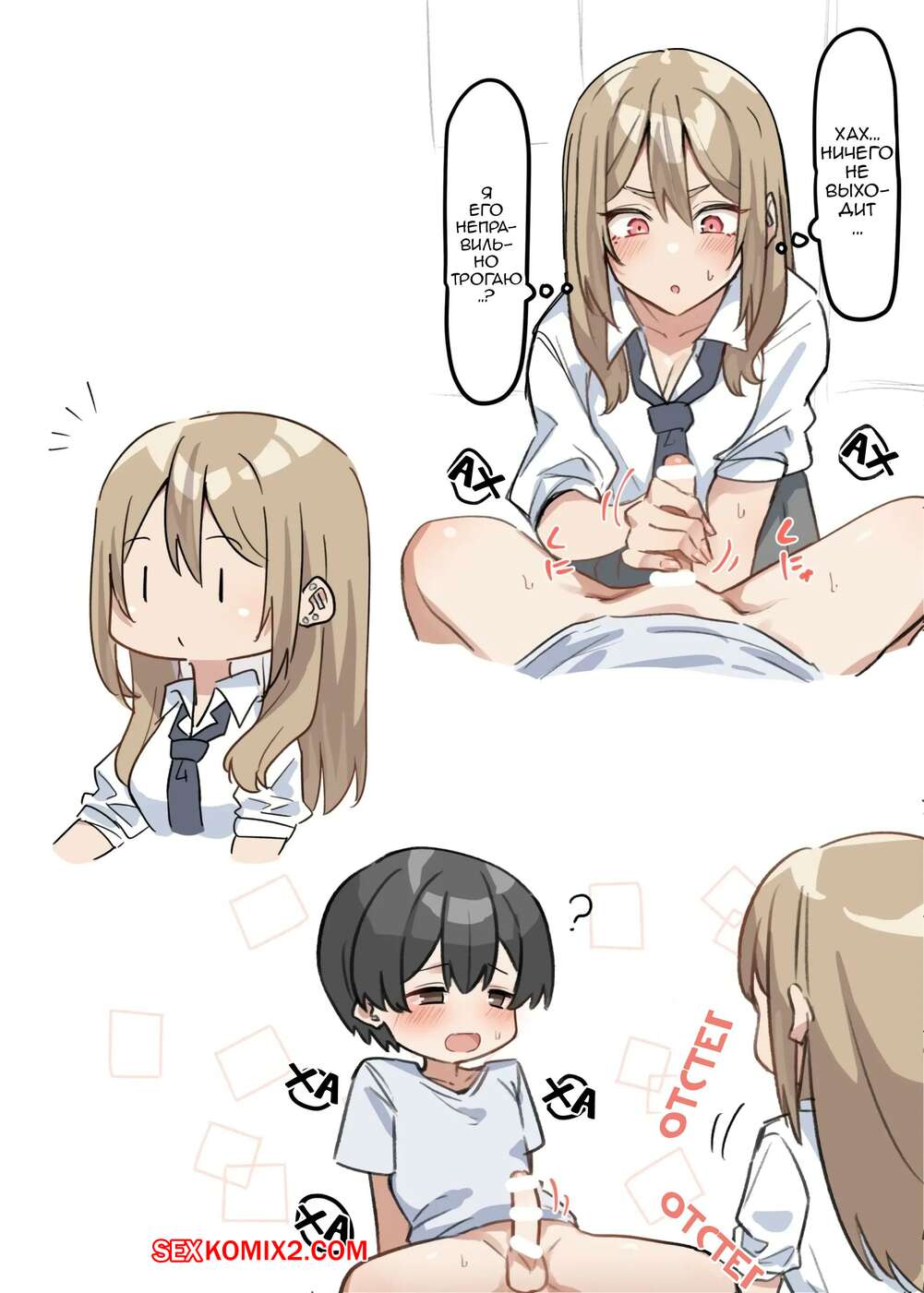 Порно комикс Гяру Старшеклассница Сестра И Сёта. Часть 2. MM Сексуальная брюнетка вернулась домой со школы и решила повеселиться со своим младшим братиком. Девушка разделась и стала дрочить хуй парня, пока он лизал ее сиськи.