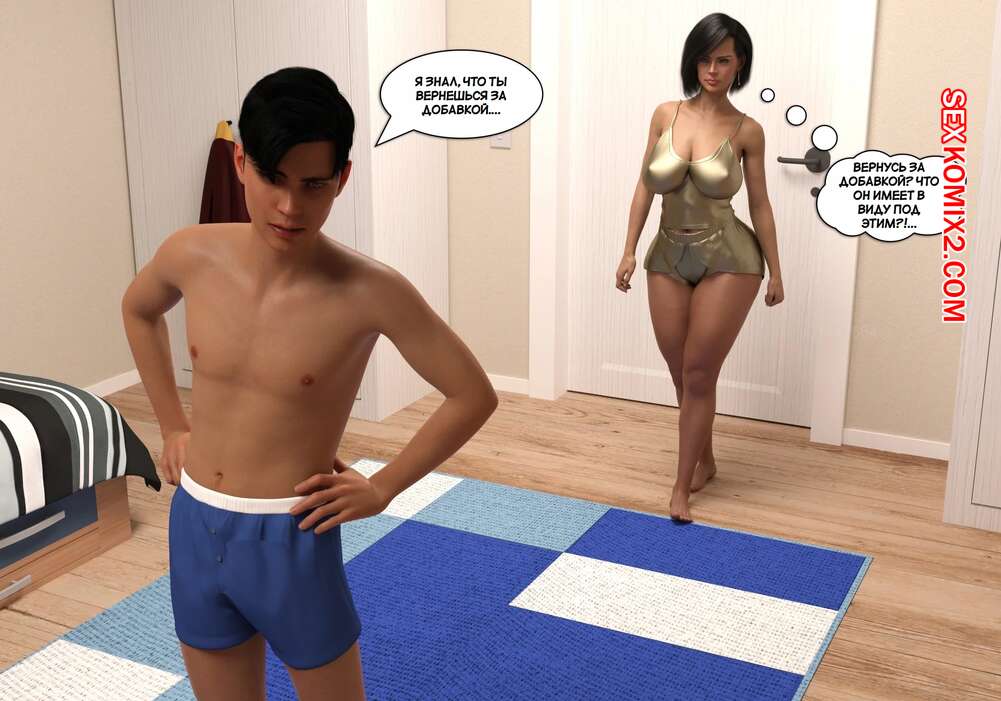 Порно комикс Что я наделал. Часть 2. What Ive done. NandoF. Сексуальная брюнетка милфа была очень возбуждена и хотела трахаться. Она пришла в комнату к своему сыну и стала сосать его большой хуй, после чего дала ему себя выебать.
