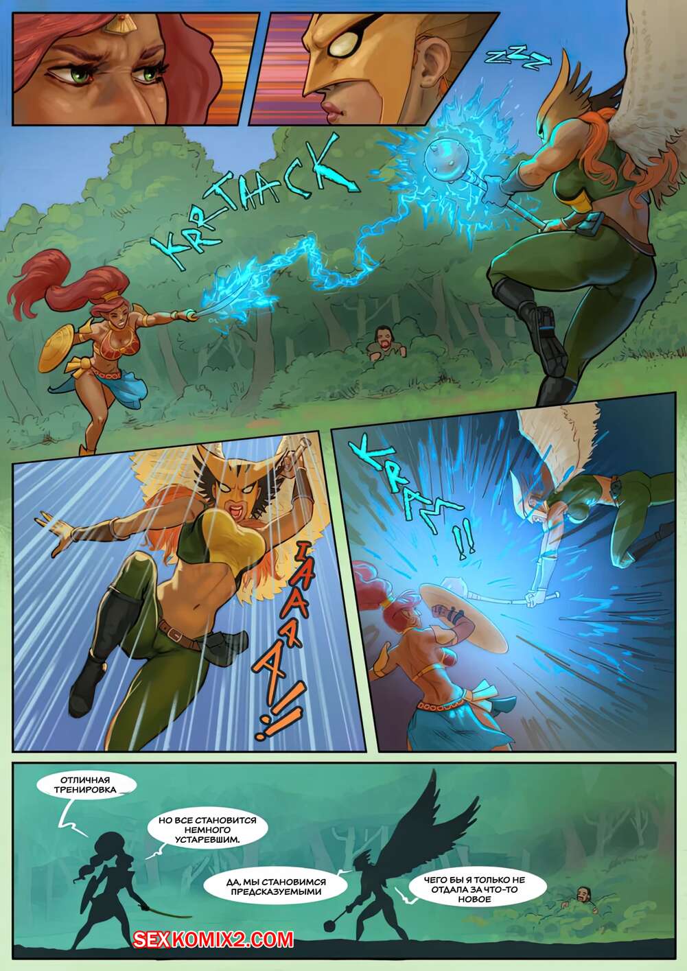 Порно комикс Горячие дуэли Ви. Урбоса против Орлицы. Hot Duels V. Urbosa VS Hawkgirl. Bonete. Две горячие рыжие красотки устроили схватку между собой. Они встретили парня и решили повеселиться с ним. Девушки стали сосать его большой хуй, после чего дали ему себя хорошенько выебать.