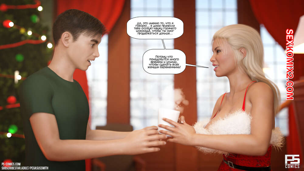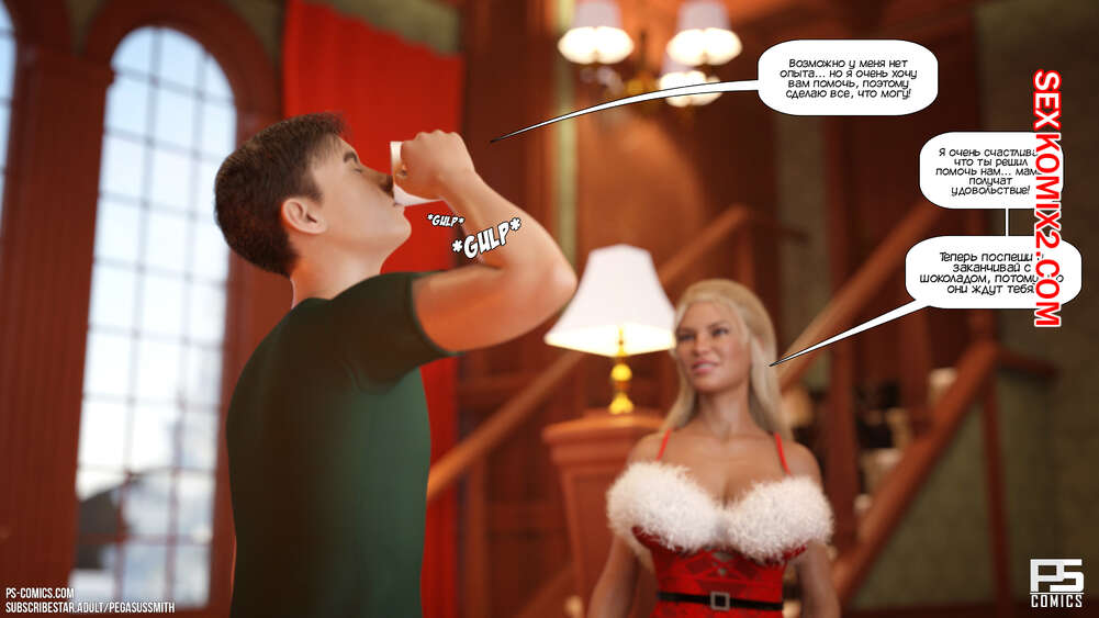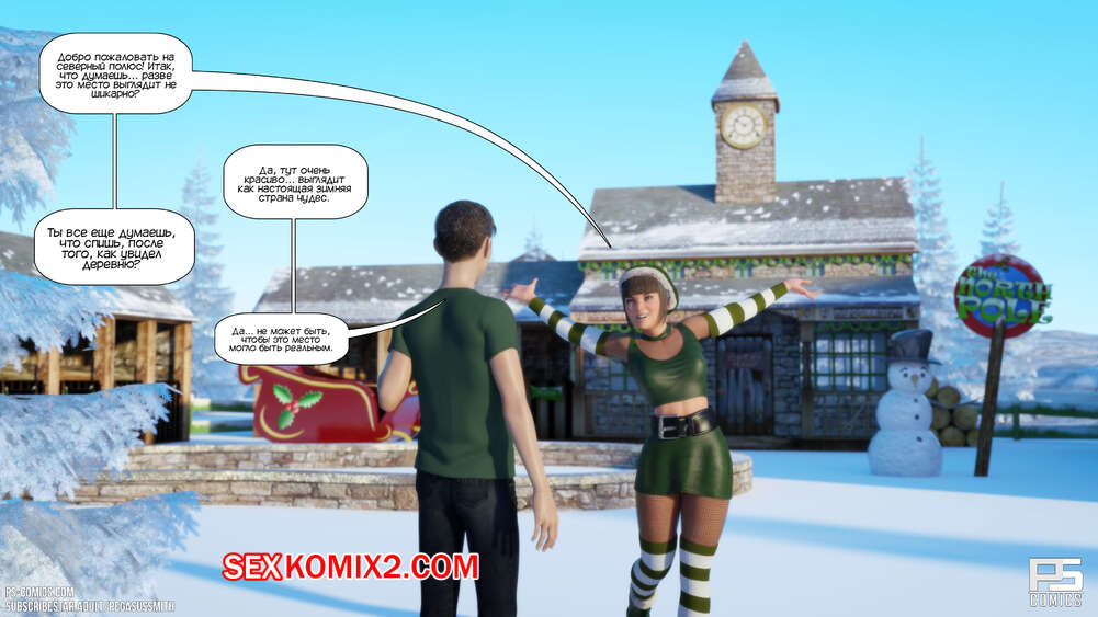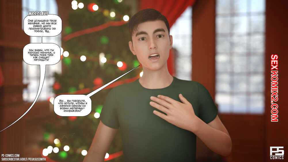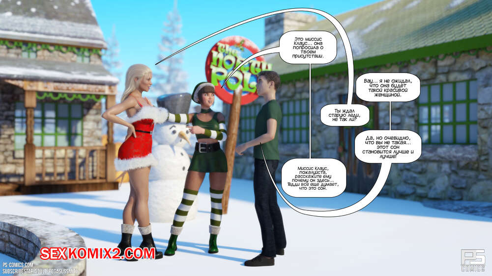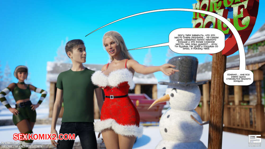 Порно комикс Зимняя страна чудес. Winter Wonderland. Pegasus Smith Молодой парень Тед мечтал провести рождество с классной девушкой. Проснувшись, он оказался окруженный сексуальными милфами, которые отсосали большой хуй парня и дали ему себя хорошенько выебать.