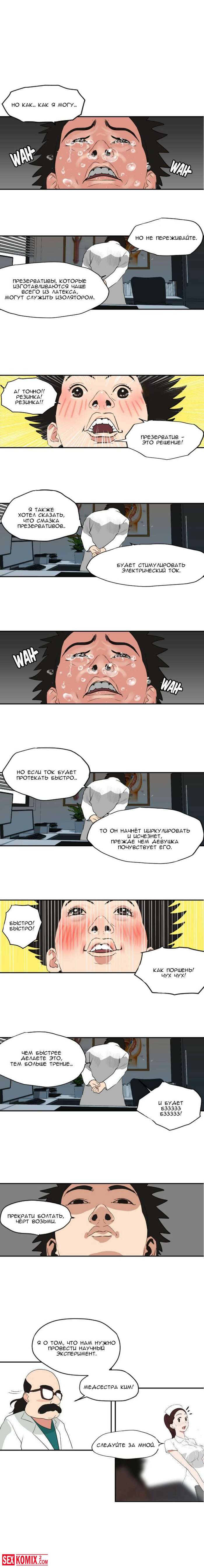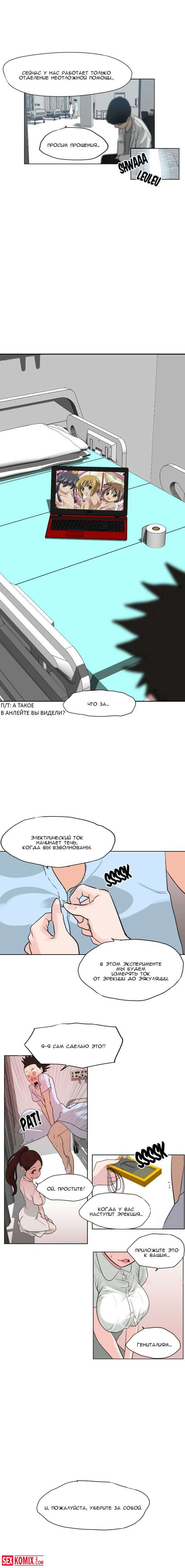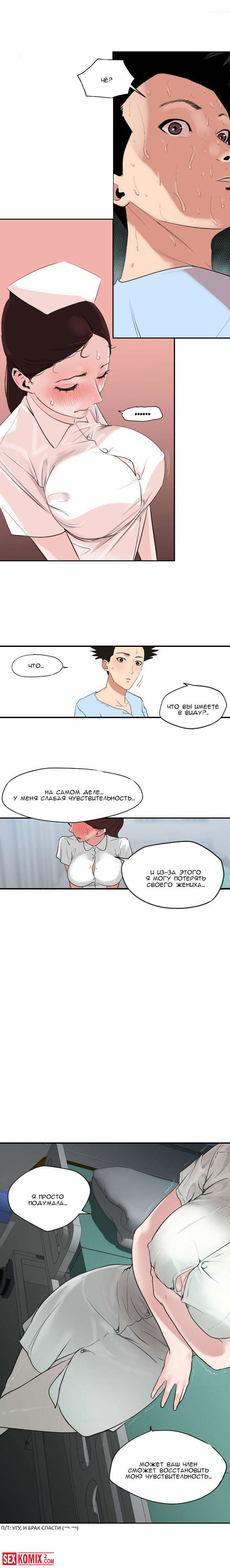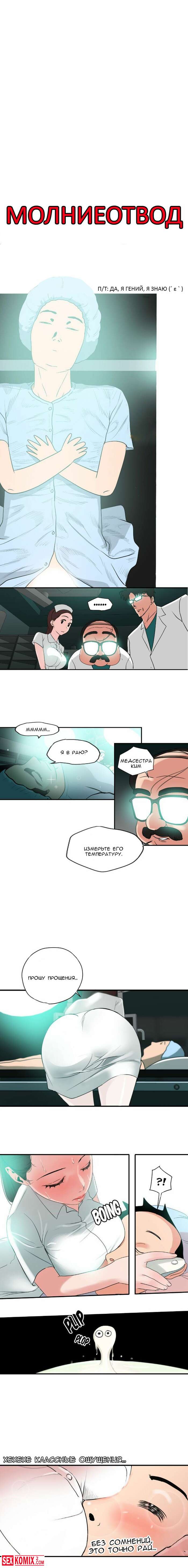 Порно комикс Молниеотвод. Части 3 и 4. От сильно возбуждения парень попал в больницу, но там оказалось ещё хуже. У него встал на развратную мед сестру.