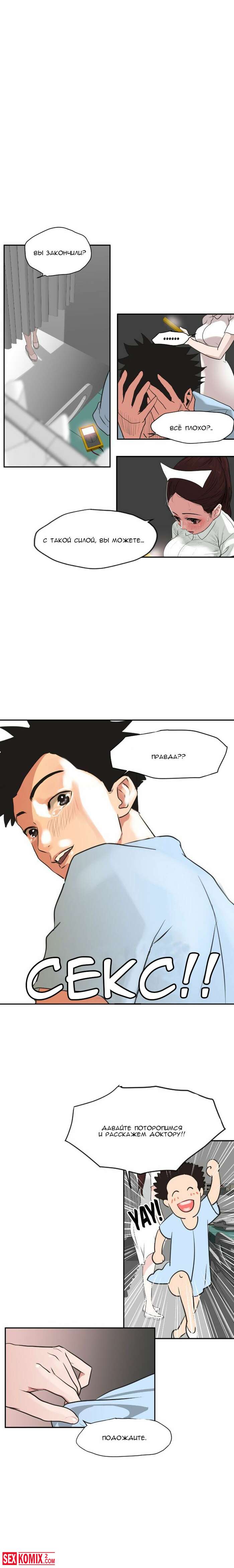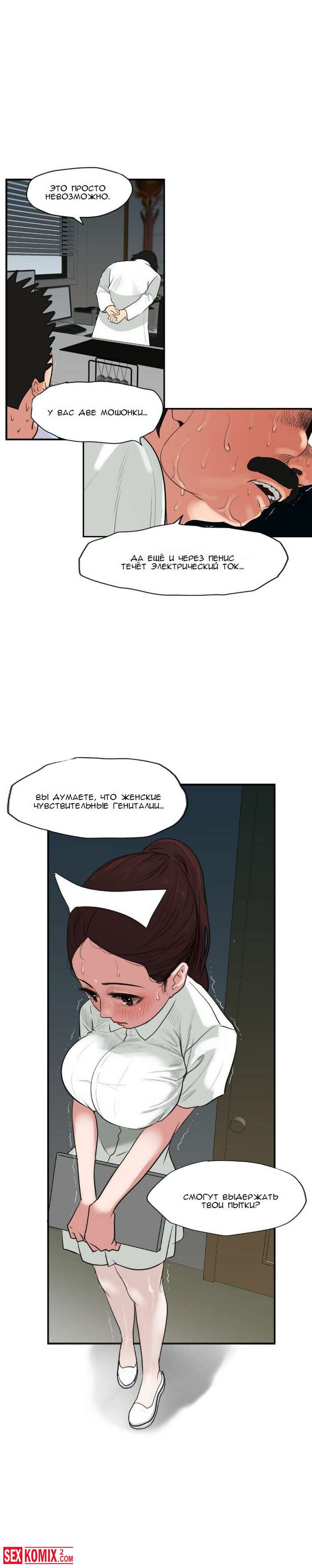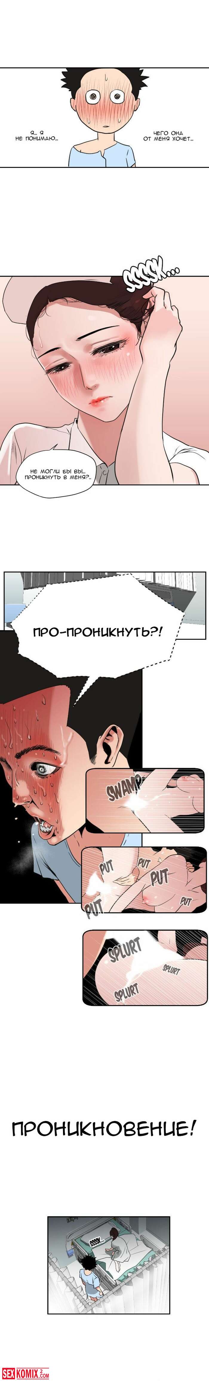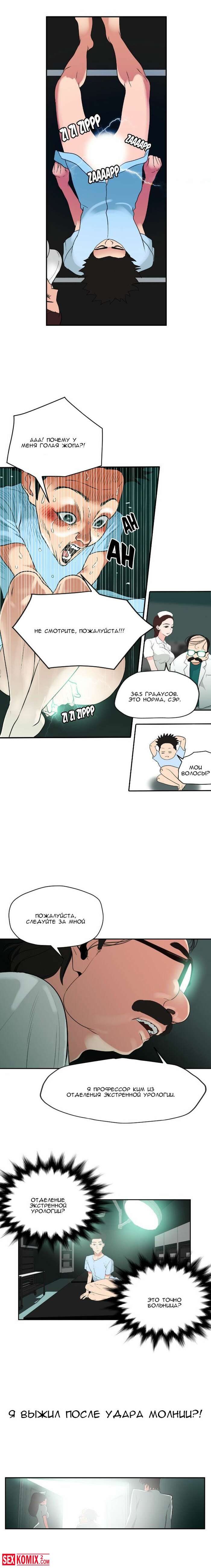 Порно комикс Молниеотвод. Части 3 и 4. От сильно возбуждения парень попал в больницу, но там оказалось ещё хуже. У него встал на развратную мед сестру.
