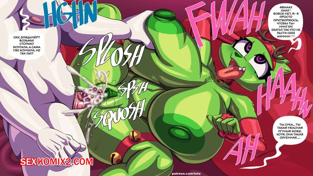 Порно комикс The Grinch. Зеленые сиськи. Green Boobs. TotoDraws Горячая красотка была очень возбуждена и хотела трахаться. Она разделась перед своим дружком и возбудила его шикарным телом, после чего дала ему себя хорошенько выебать.