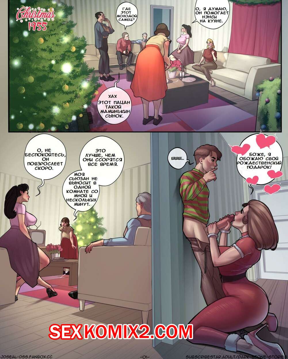 Порно комикс Щелчок. Семейное приложение. Рождество. JDSeal Горячая брюнетка милфа была очень возбуждена и решила повеселиться со своим сыном. Она разделась и отсосала его большой хуй, после чего дала ему себя выебать во все дырочки.