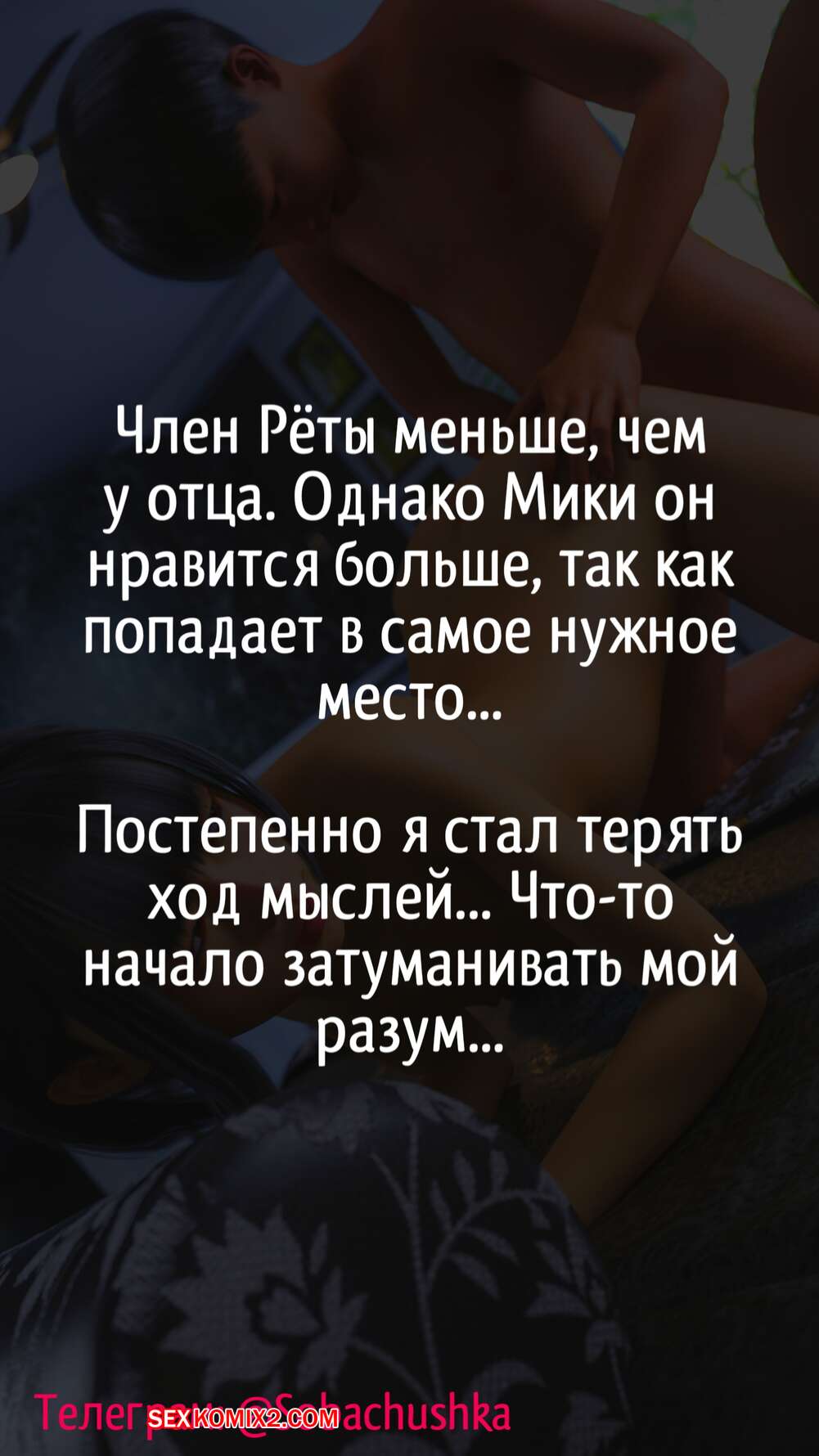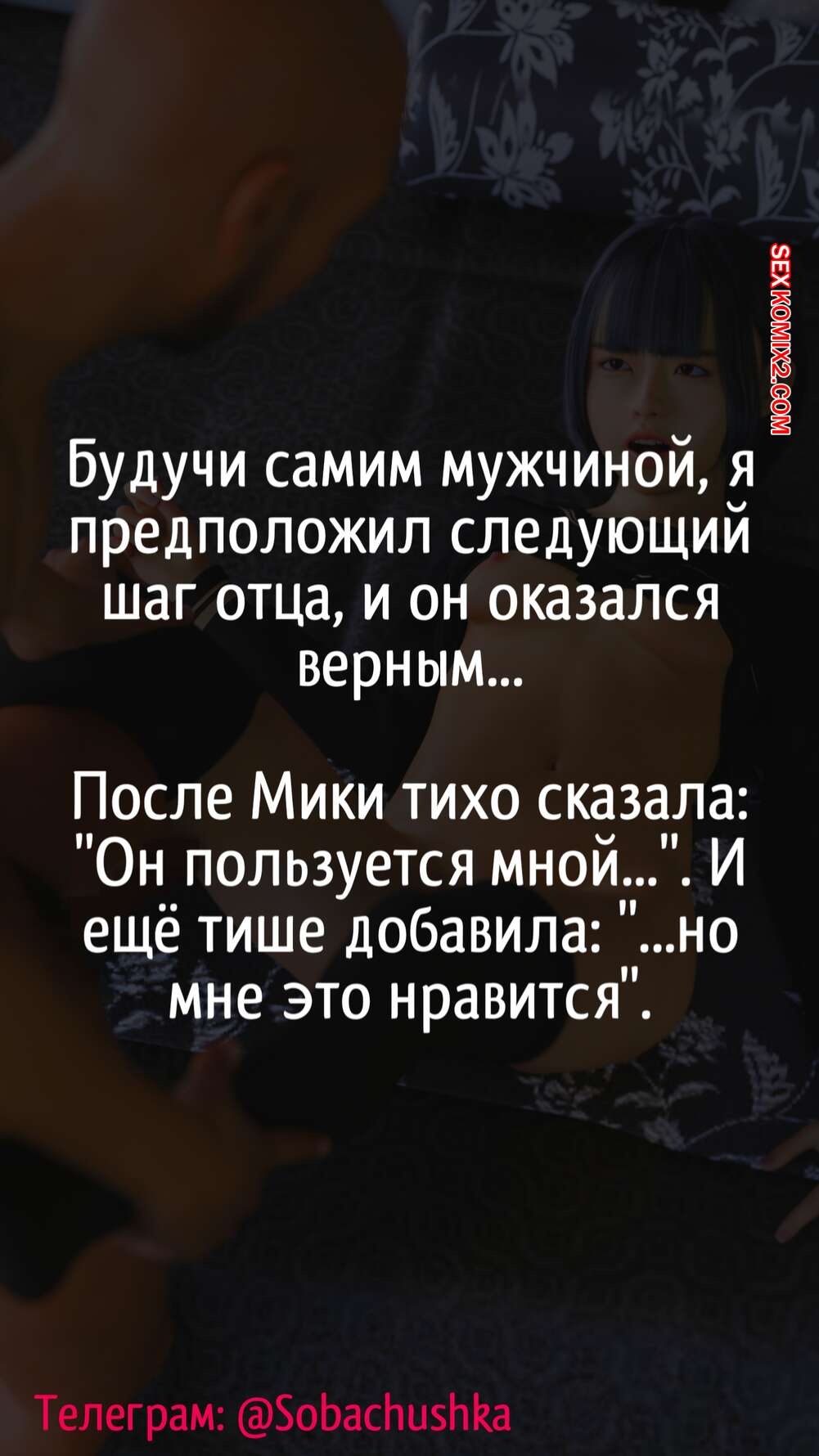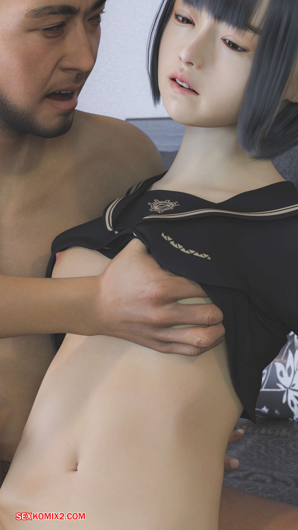 Порно комикс Мики инструмент для удовлетворения мужских потребностей своей семьи. PashPash3D Сексуальная брюнетка была очень возбуждена и решила повеселиться со своим отчимом и его сыном. Красотка разделась и отсосала большие хуи парней, после чего дала им себя выебать.