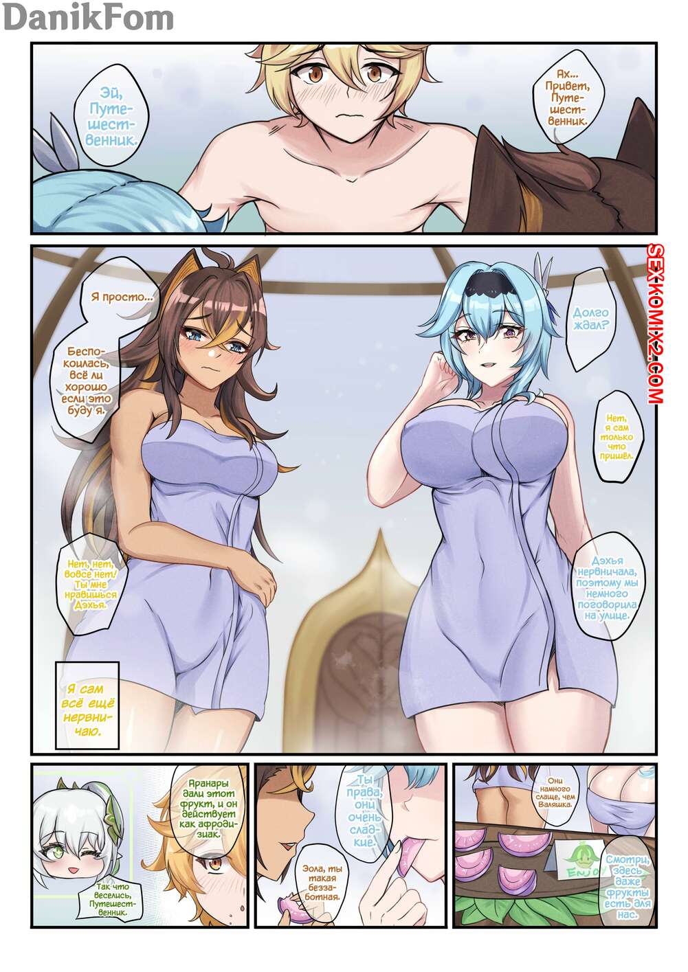 Порно комикс Genshin Impact. Горячая и Холодная Шуньята. BruLee Две горячие красотки были очень возбуждены и хотели трахаться. Они достали большой хуй парня и стали ему отсасывать, после чего дали ему выебать себя, получив огромное удовольствие.