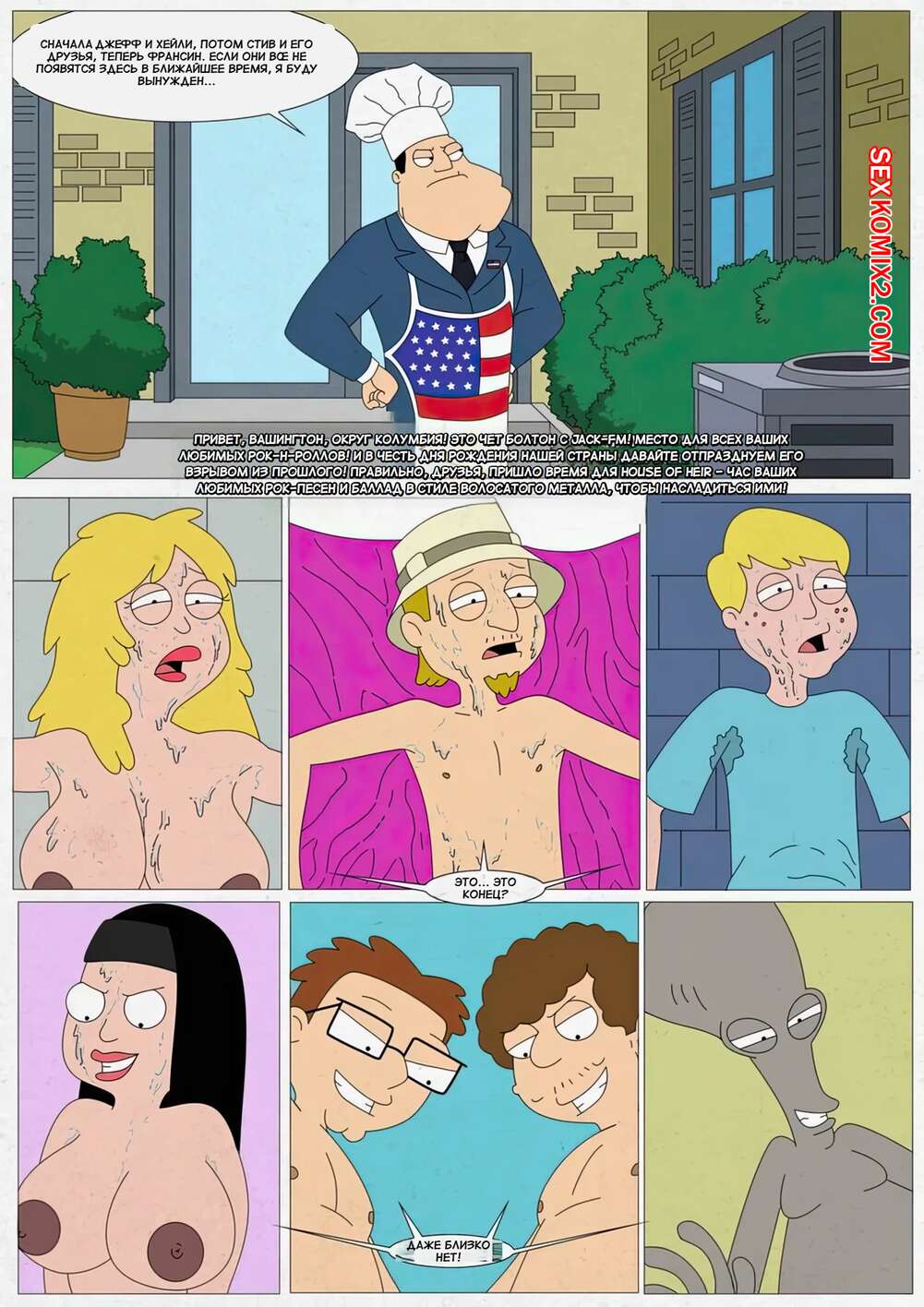 Порно комикс Американский папа. Горячие времена 4 июля. Hot Times On The 4th Of July. Grigori. Горячие красотки были очень возбуждены и хотели трахаться. Они разделись перед молодыми парнями и стали у них отсасывать, после чего занялись страстной еблей.