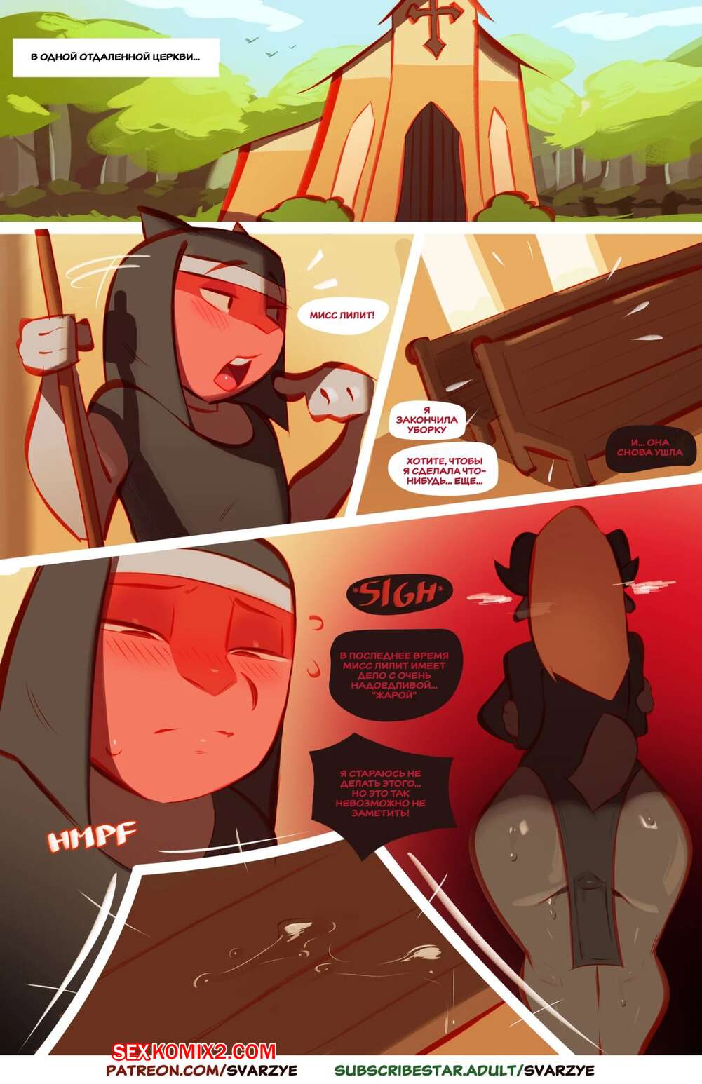 Порно комикс Нуждающаяся Лилит. Needy Lilith. Svarzye. Горячая блондинка решила помочь подруге с большим членом расслабиться. Она опустилась на колени и отсосала ее член, после чего позволила ей трахнуть свою киску.