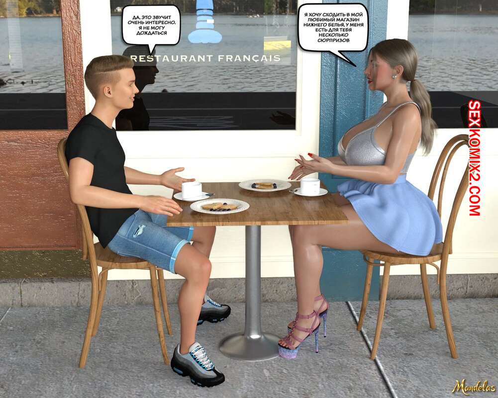 Порно комикс Приключение на выходных. Часть 8 и 9. Weekend Adventure. Mandelas После первого секса с молодым парнем горячая милфа стала зависима от его члена. Красотка соблазняет парня снова и снова, чтобы отсосать его хуй и как следует поебаться.