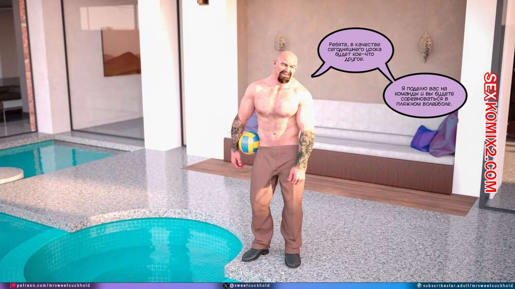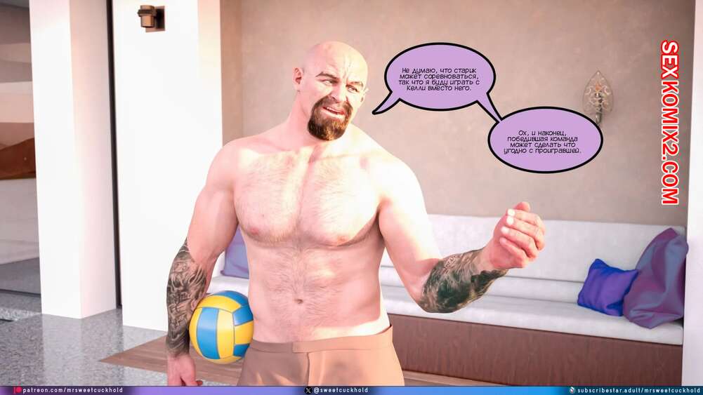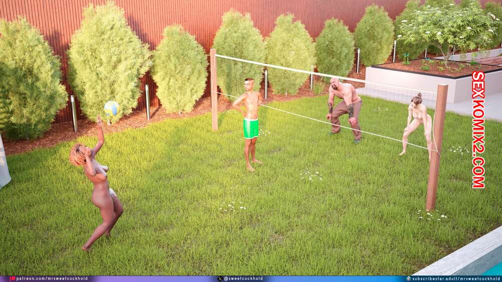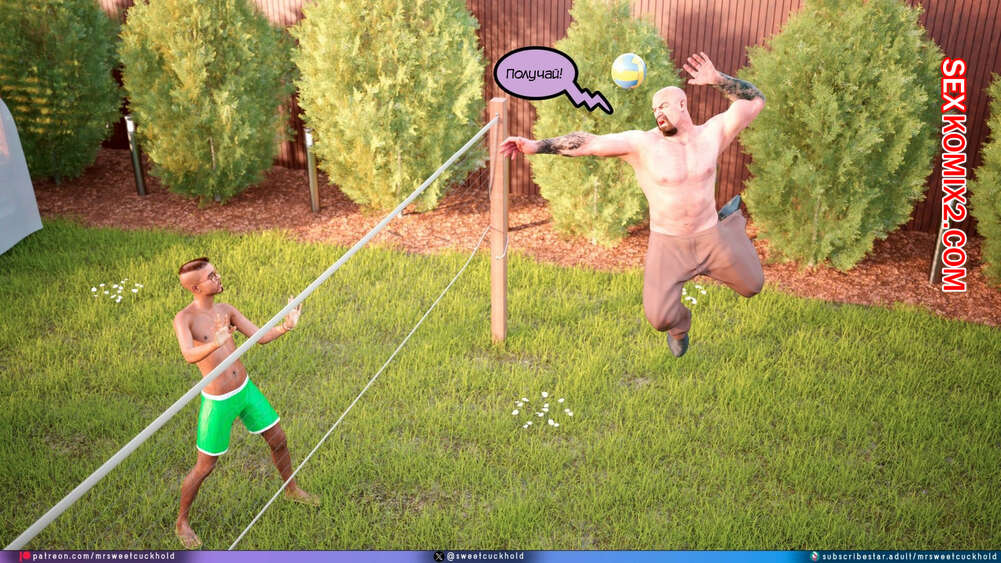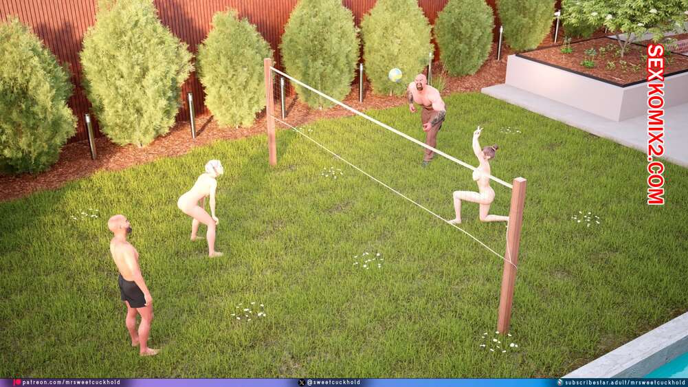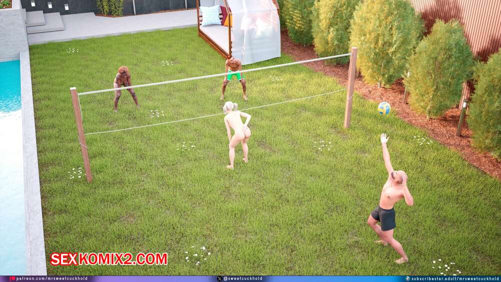 Порно комикс Путь куколда. Часть 3. Way Of The Cuck. Mr.SweetCuckhold Джеймс и Мейв играли в команде в волейбол против других пар. Они проиграли и теперь девушке предстоит заняться сексом со стариком на глазах ее мужа куколда.