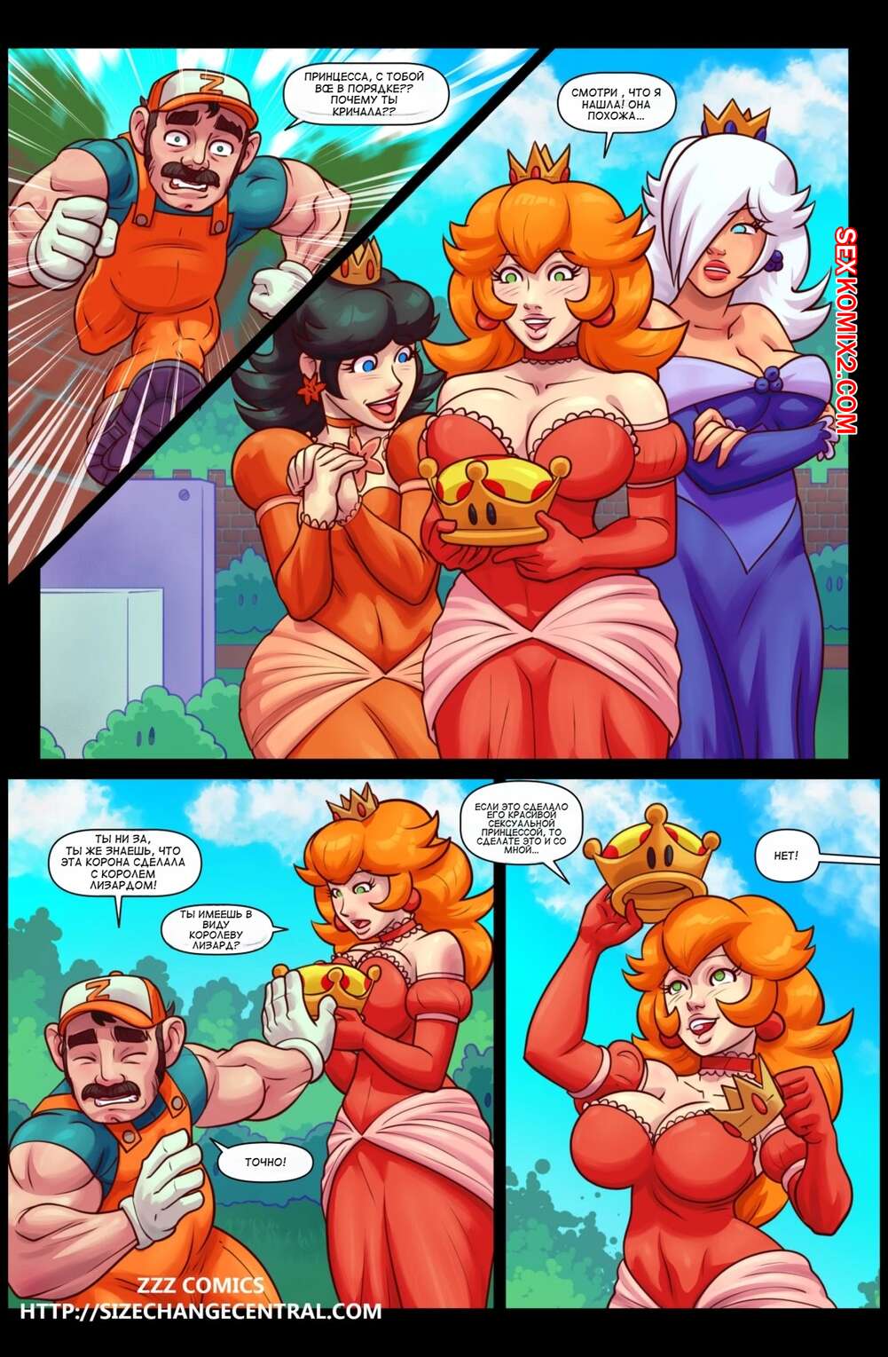 Порно комикс Марио. Сестренки супер размеров. Часть 1. Super Sizeo Sis. ZZZ Comics. Горячие красотки увеличись в размерах и теперь они очень возбуждены. Девушки схватили своих друзей и дали им отлизать свои пизденки, получив огромное удовольствие.