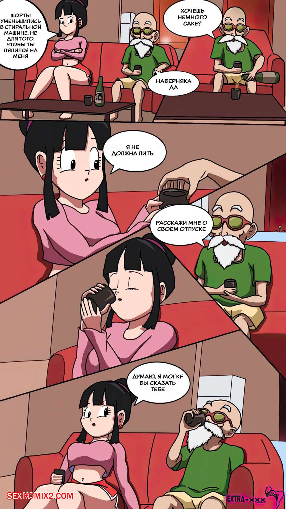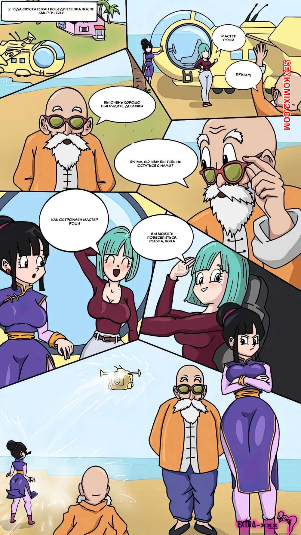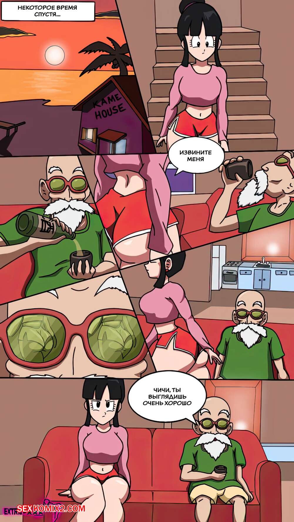 Порно комикс Dragon Ball. Чичи и Роши. Chichi x Roshi. Extranimacion. Сексуальная брюнетка скучает по своему парню. Она надела откровенный купальник и пошла загорать, где попросила старика Роши нанести на нее солнцезащитный крем.