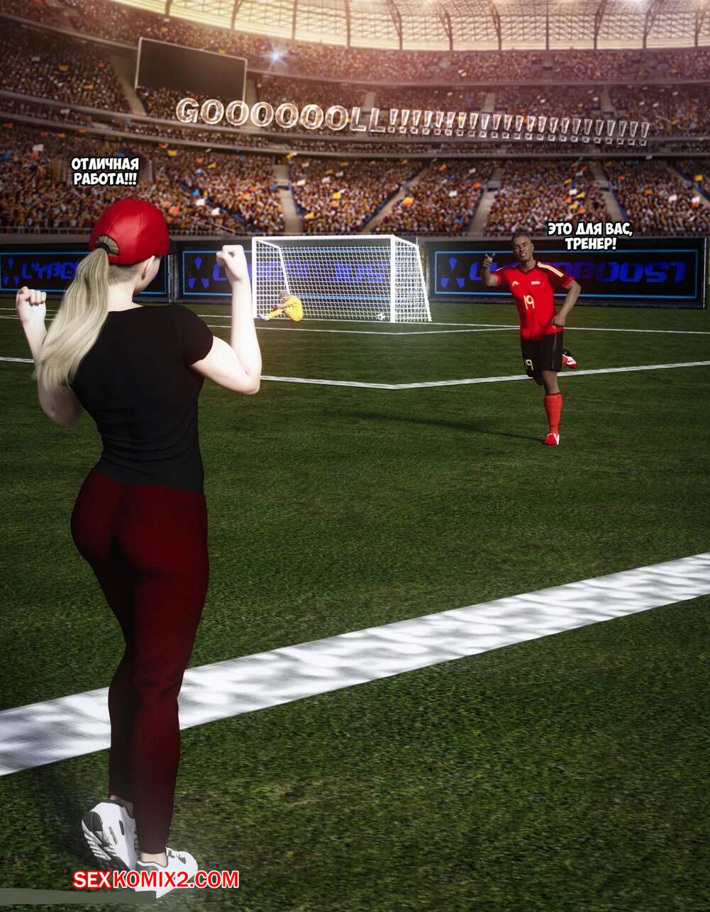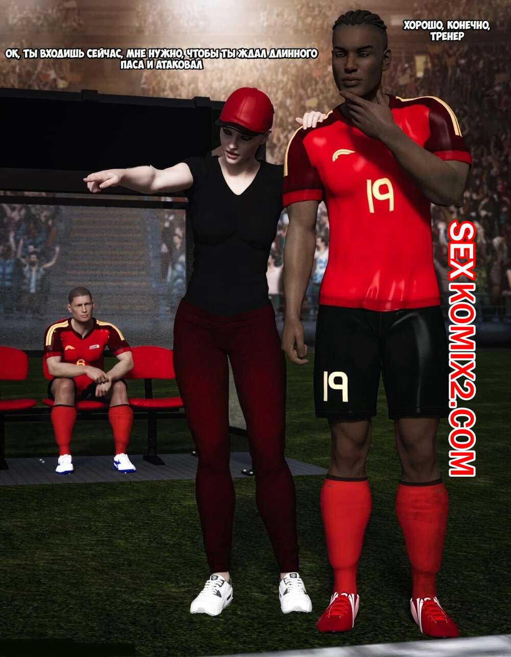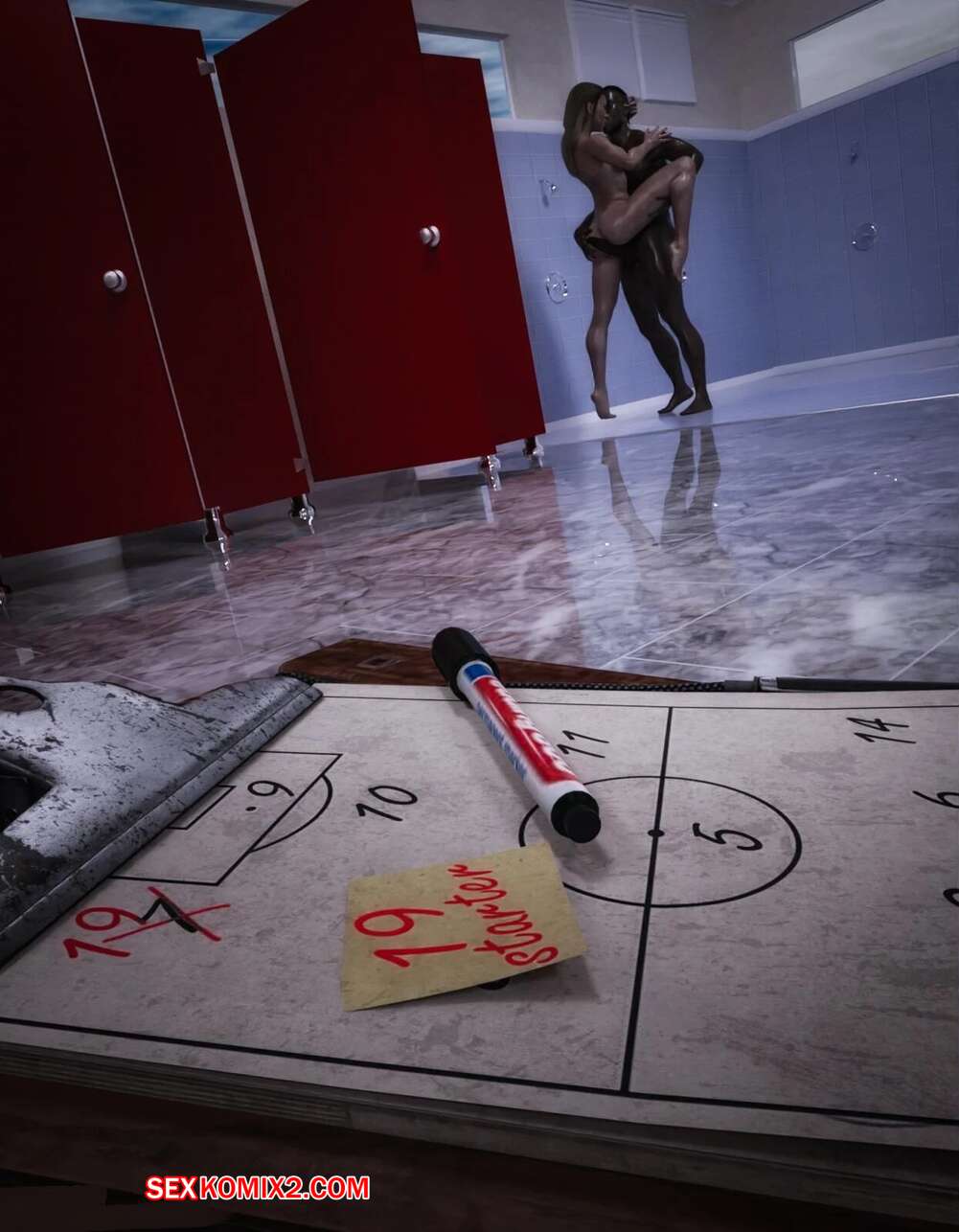 Порно комикс Тренер Энди. Andy Coach. Spiderpity Горячая блондинка милфа решила повеселиться в раздевалке после игры с парнем из своей команды. Красотка разделась и отсосала хуй парня, после чего дала ему выебать свою пизденку.