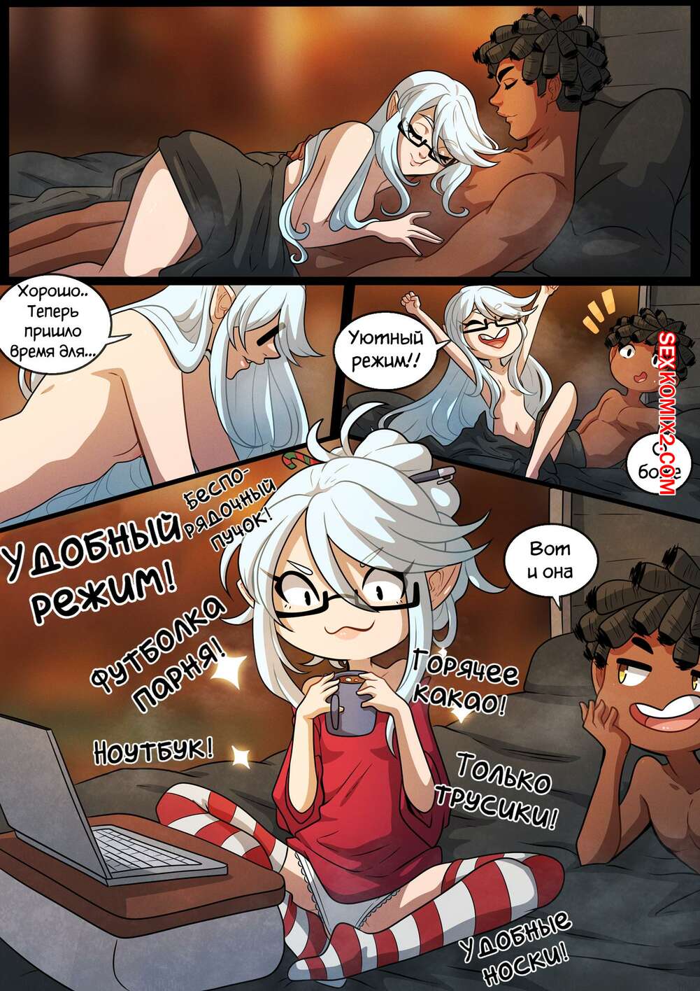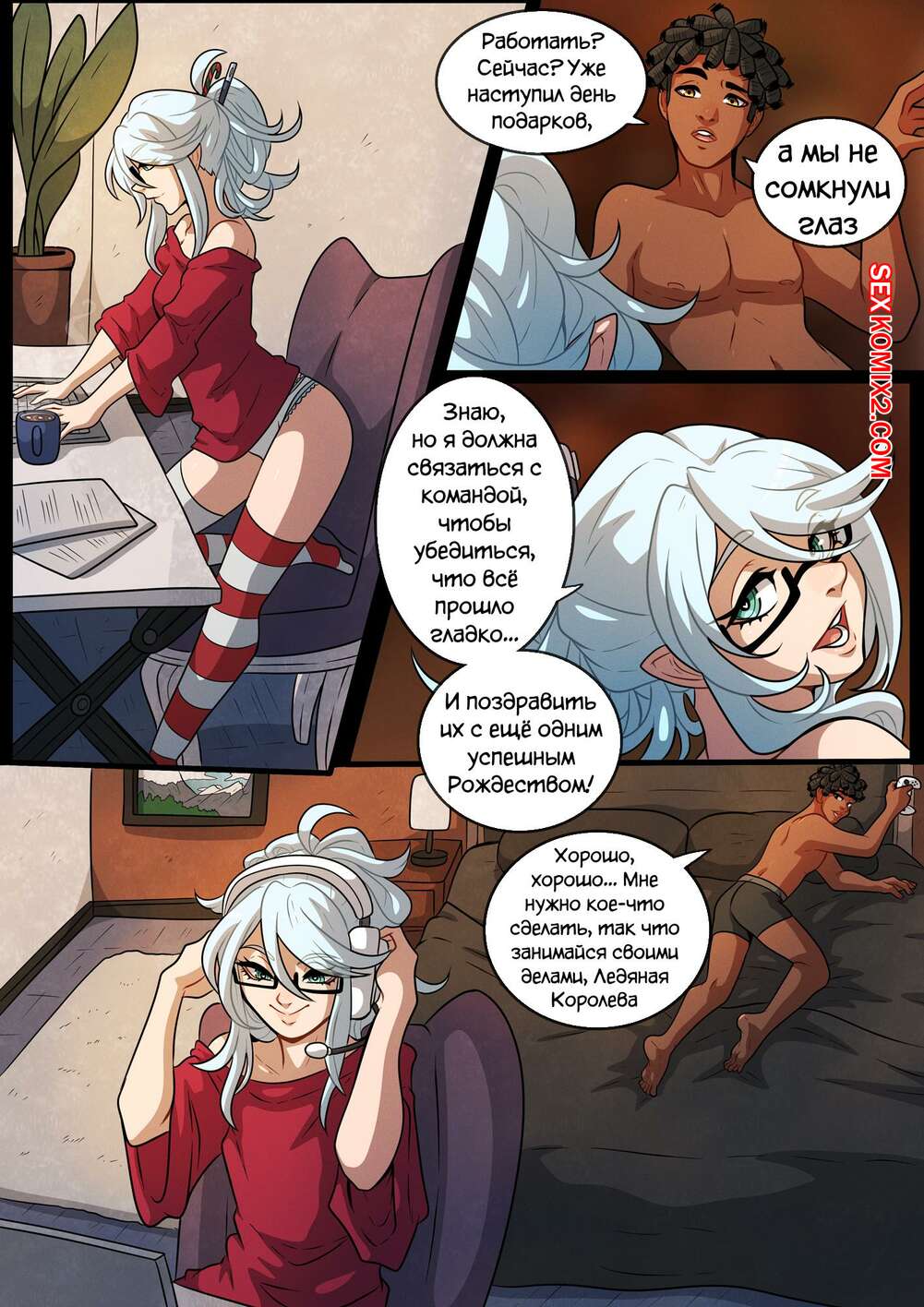 Порно комикс Выходные Холли. Часть 3. A Holly Holidays. Kinkymation Сексуальная блондинка была очень возбуждена и хотела трахаться. Она разделась перед своим темнокожим дружком и отсосала его большой хуй, после чего дала ему выебать свою пизденку.