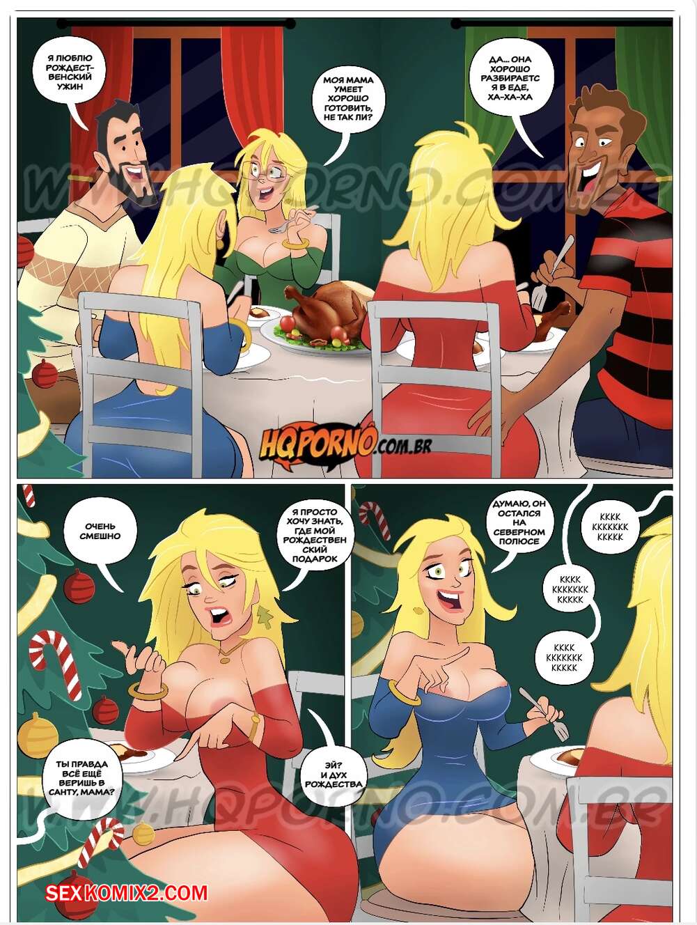 Порно комикс Падчерицы. Часть 16. As Enteadas. HQPorno Сексуальная блондинка хотела получить от санты особый подарок, поэтому позвала его в уединенное место. Девушка разделась и отсосала большой хуй старика, после чего дала ему себя выебать.