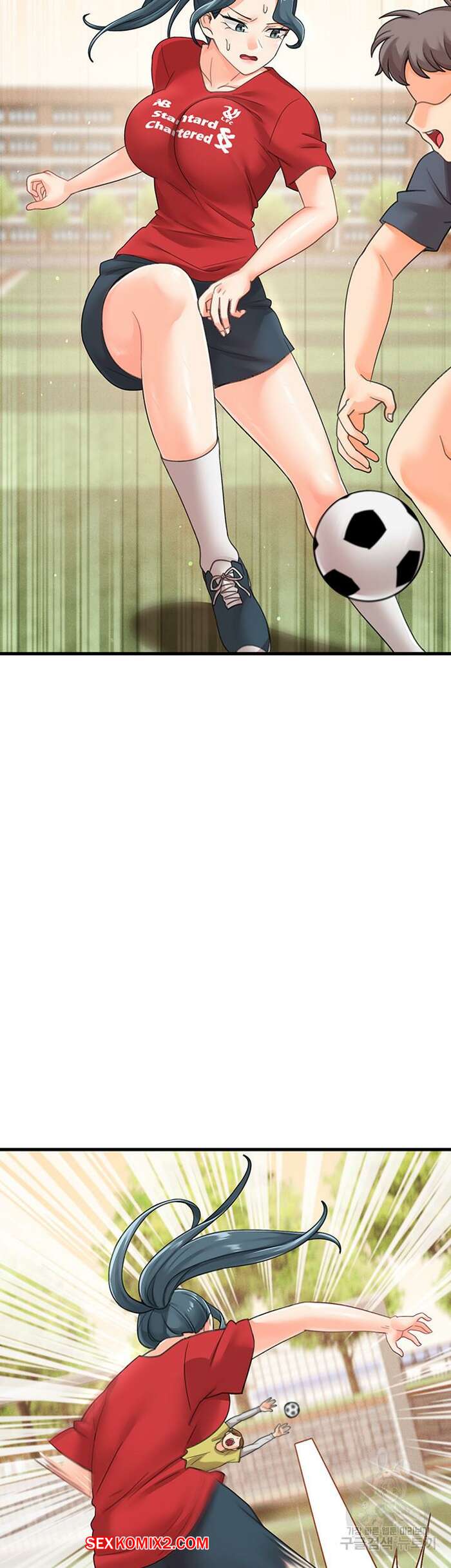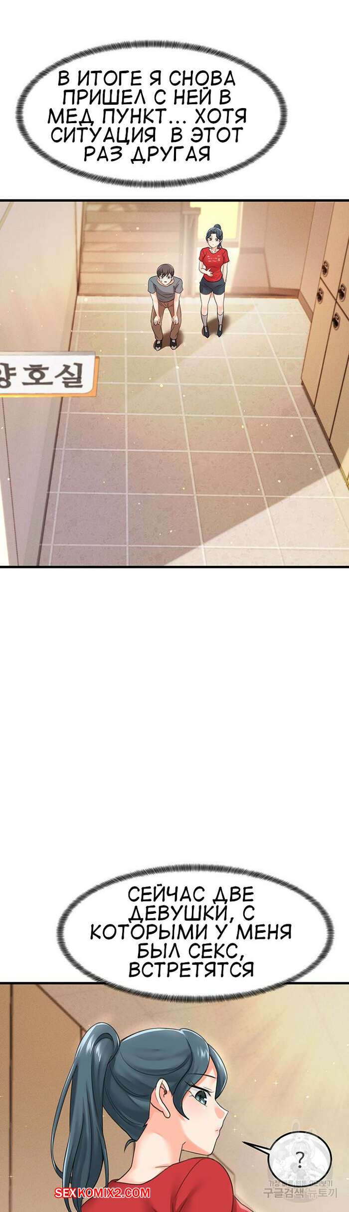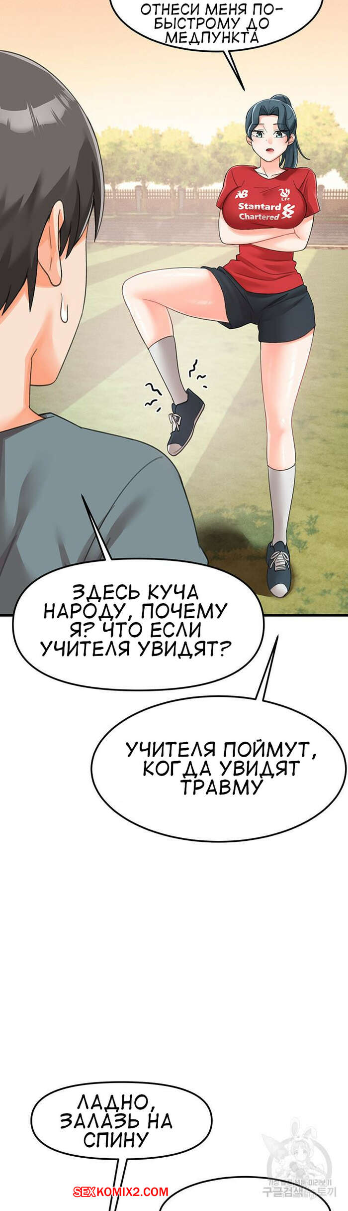 Порно комикс Школа интернат. Часть 17. Boarding school Горячая брюнетка играла в футбол с парнями и получила травму. Молодой парень пришел ей на помощь и понес ее в школу, чтобы показать девушку медсестре..