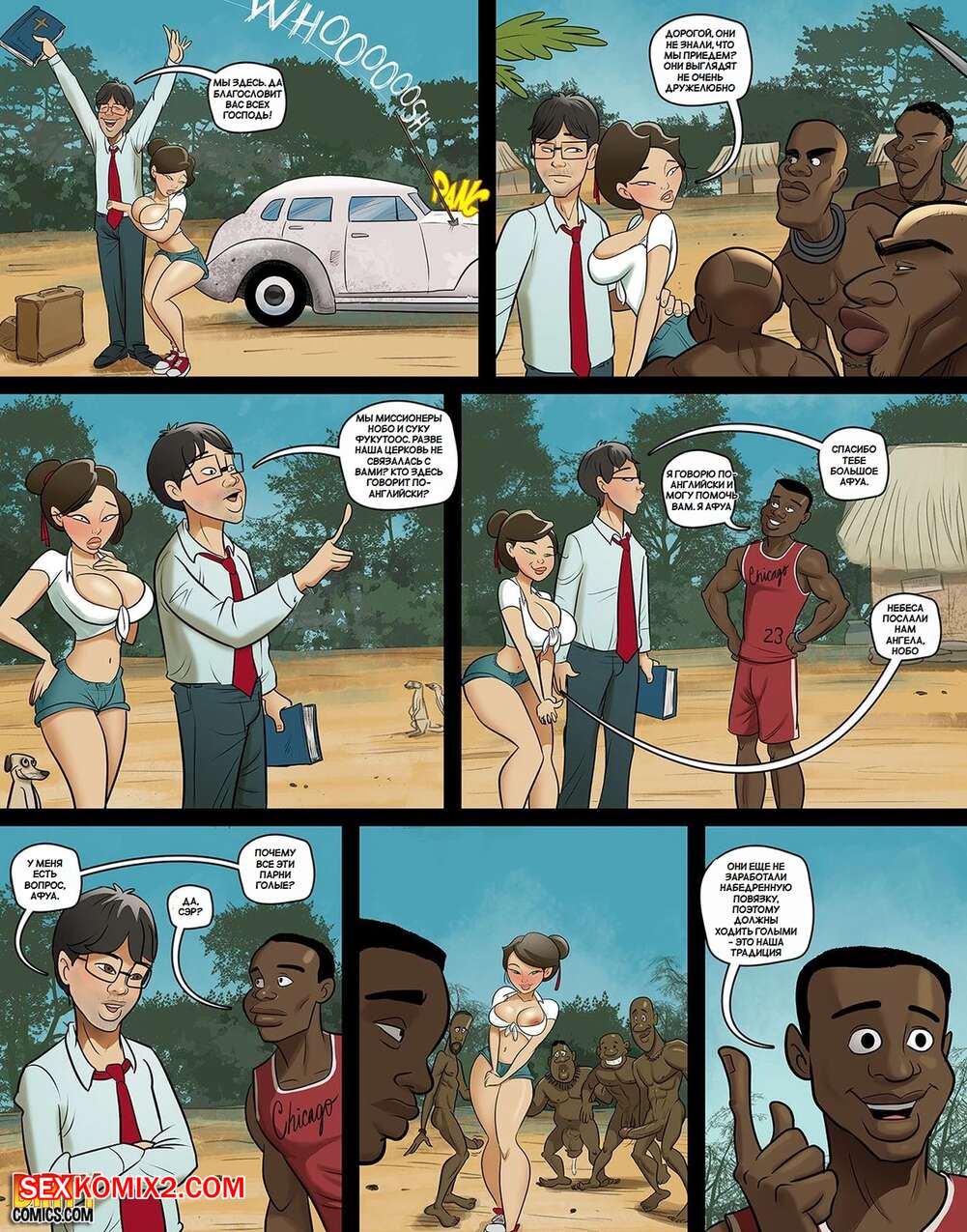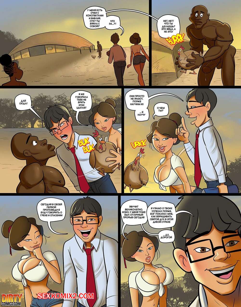 Порно комикс Миссионеры. Missionaries. Dirtycomics Сексуальная брюнетка милфа прибыла со своим мужем на остров, где их встретили темнокожие местные зрители. Они сразу решили повеселиться с красоткой и дали ей отсосать свои большие хуи.