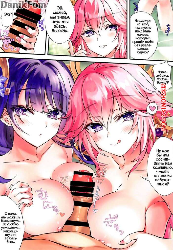 Порно комикс Genshin Impact. Тайный Горячий Источник Инадзумы. Akaneiro Две горячие красотки были очень возбуждены и решили повеселиться со своим дружком. Они разделись и отсосали большой хуй парня, после чего дали ему себя хорошенько выебать.