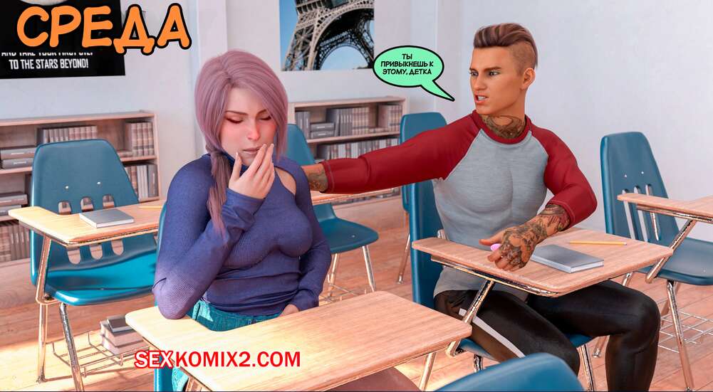 Порно комикс Тайное предательство. Часть 3. Undercover Betrayal. Mr.SweetCuckhold Красотка была очень возбуждена во время урока, поэтому она поскорее отправилась в туалет и стала ласкать свою пизденку. Там к ней присоединился парень, который выебал девушку и кончил в нее.
